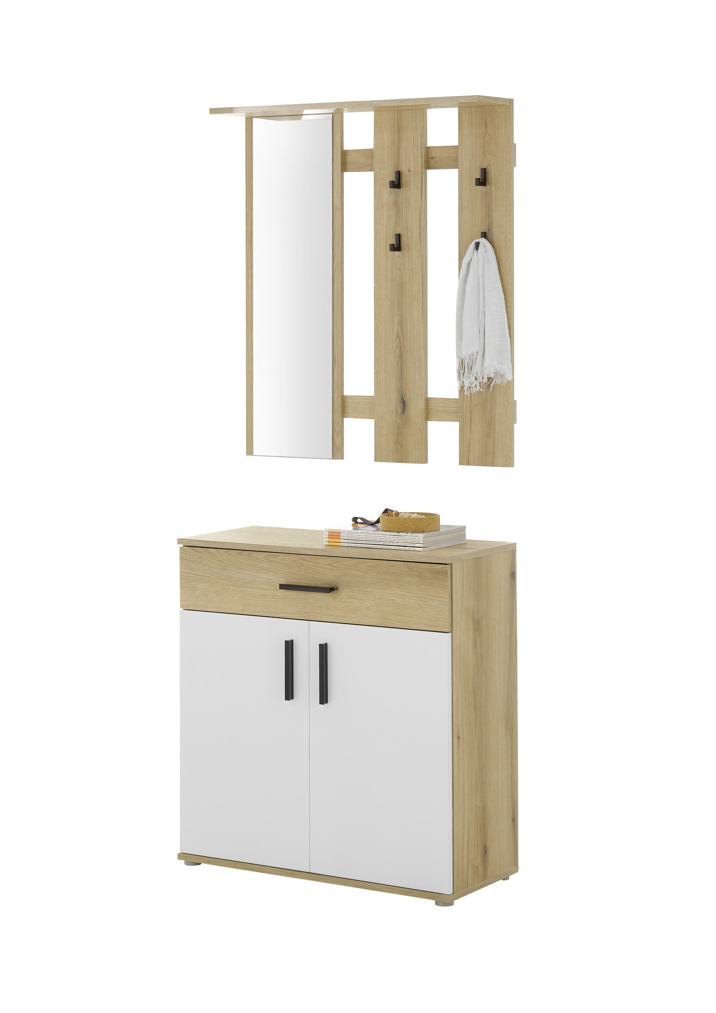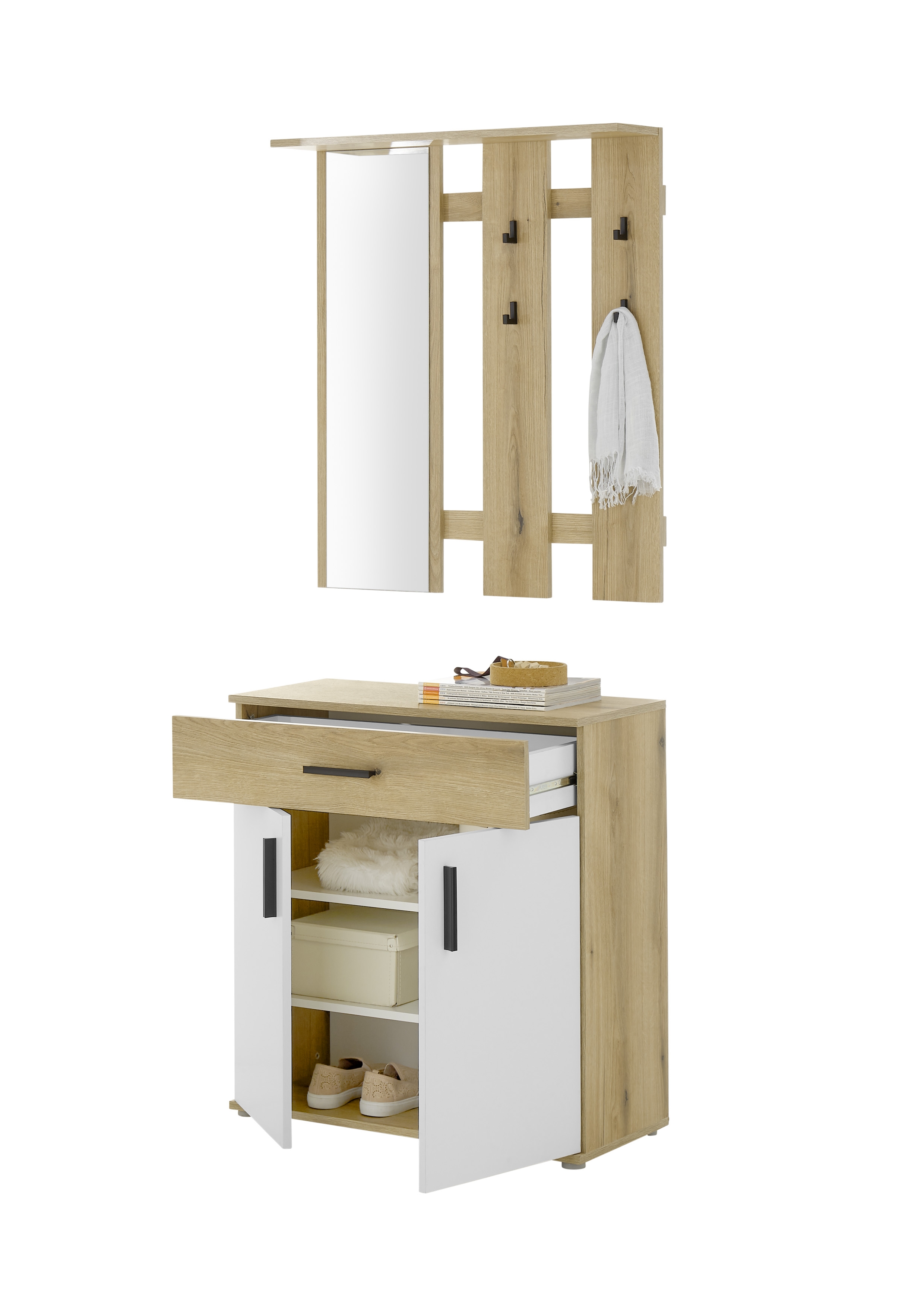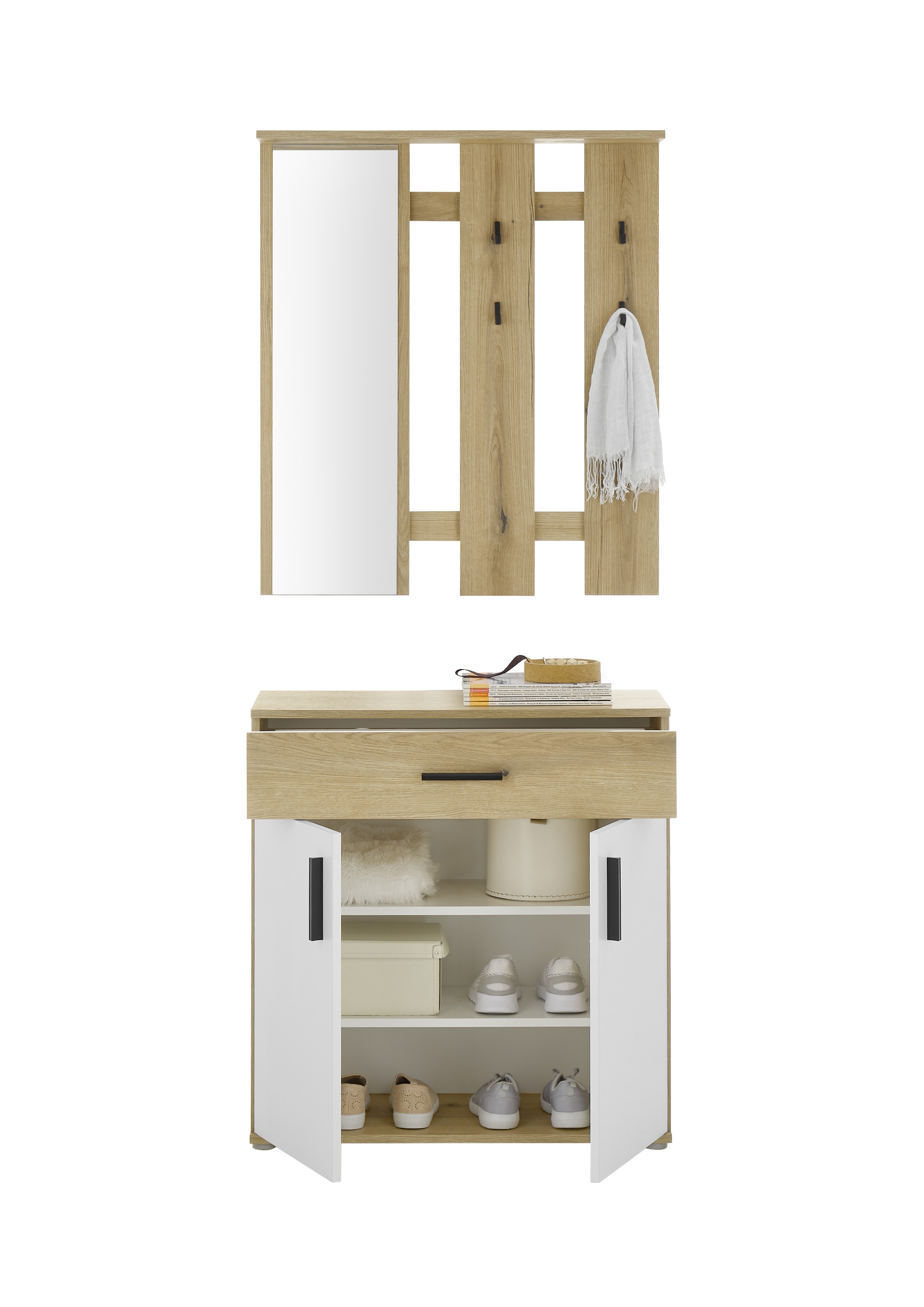 1 Schuhkommode mit 2 Türen, 1 Schubkasten mit Kugelauszug und 2 Einlegeböden