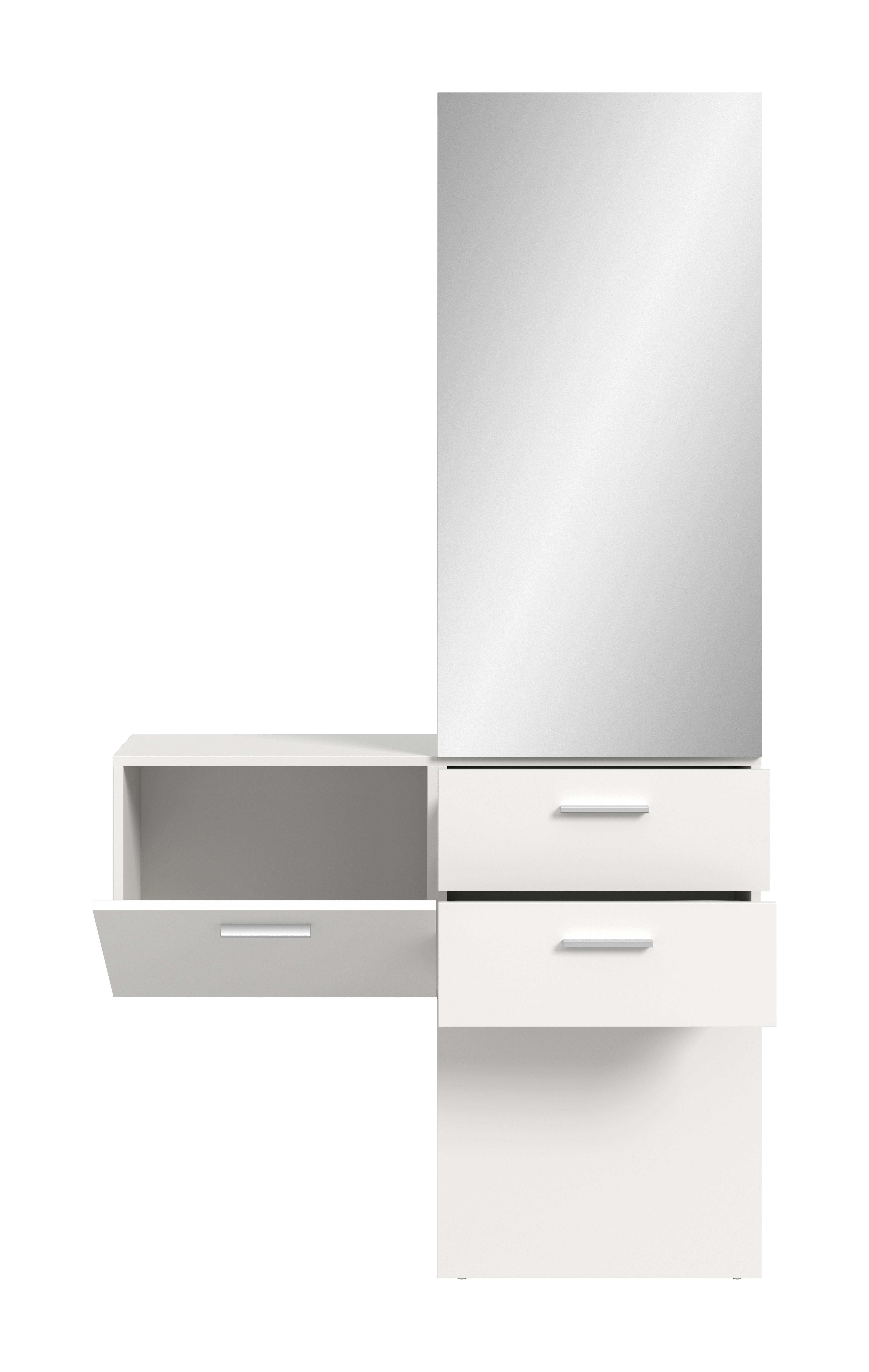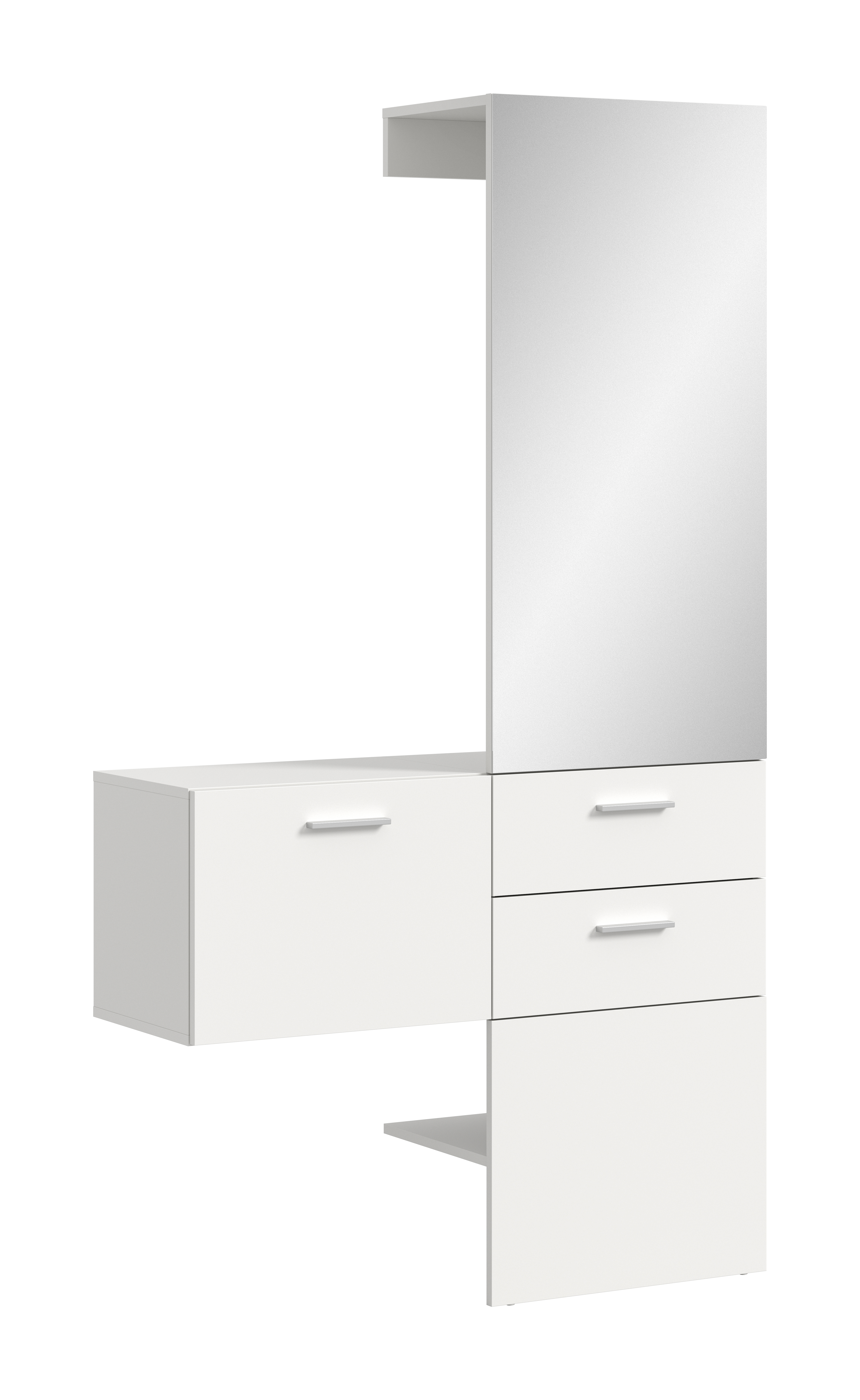 1 Kompaktgarderobe mit 2 Schubkästen, 1 Spiegel, 1 Boden und 1 Kleiderstange