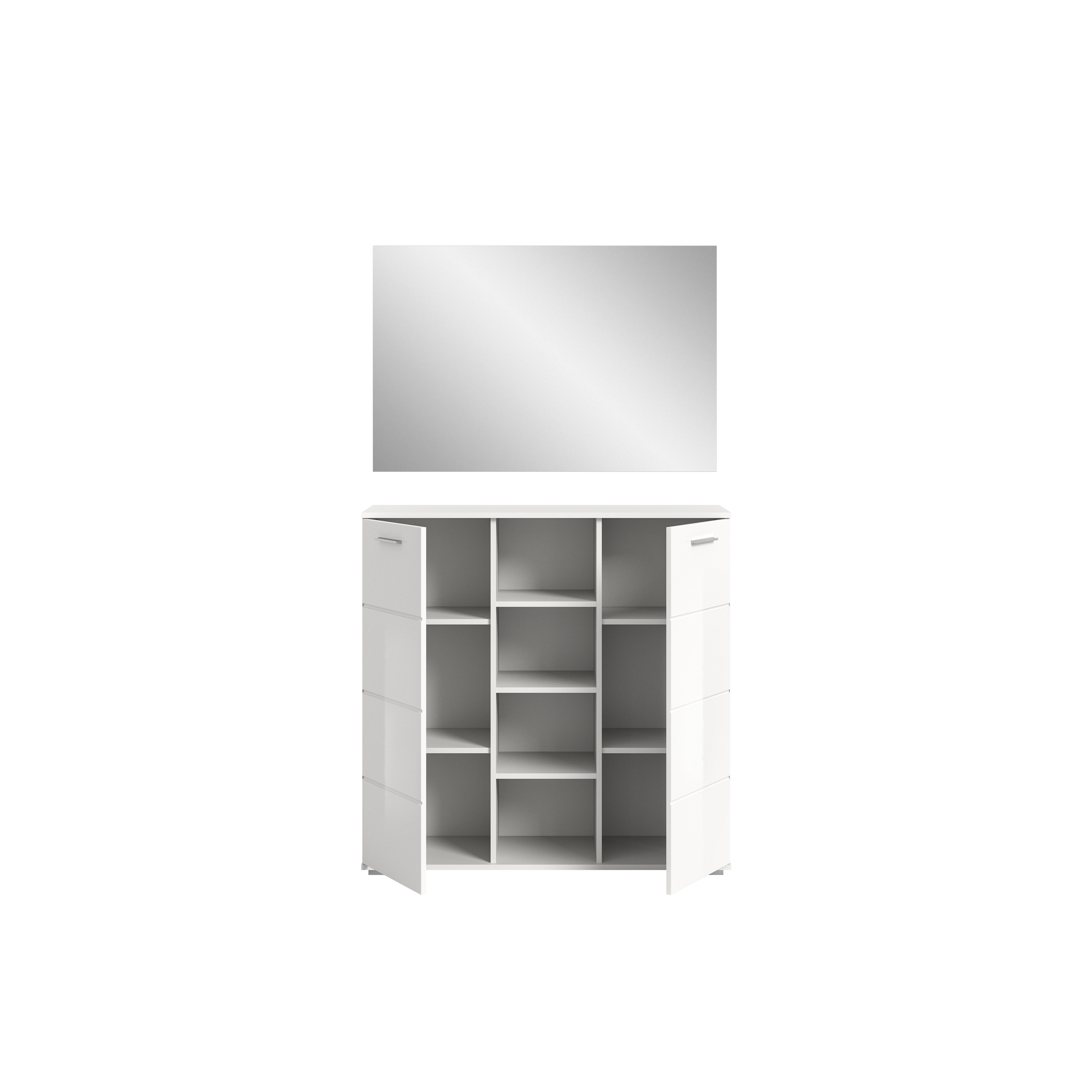Erweitern Sie den Eingangsbereich Ihres Zuhauses mit unserer eleganten Garderobenkombination in Weiß Nachbildung und Weiß Hochglanz für Flur und Diele. Durchdacht gestaltet und mit großzügigem Stauraum ausgestattet, bietet sie nicht nur praktische Aufbewahrungsmöglichkeiten, sondern verleiht Ihrem Raum auch eine zeitlose Ästhetik. Entdecken Sie jetzt dieses stilvolle Möbelstück und schaffen Sie einen einladenden Empfangsbereich für Ihre Gäste.