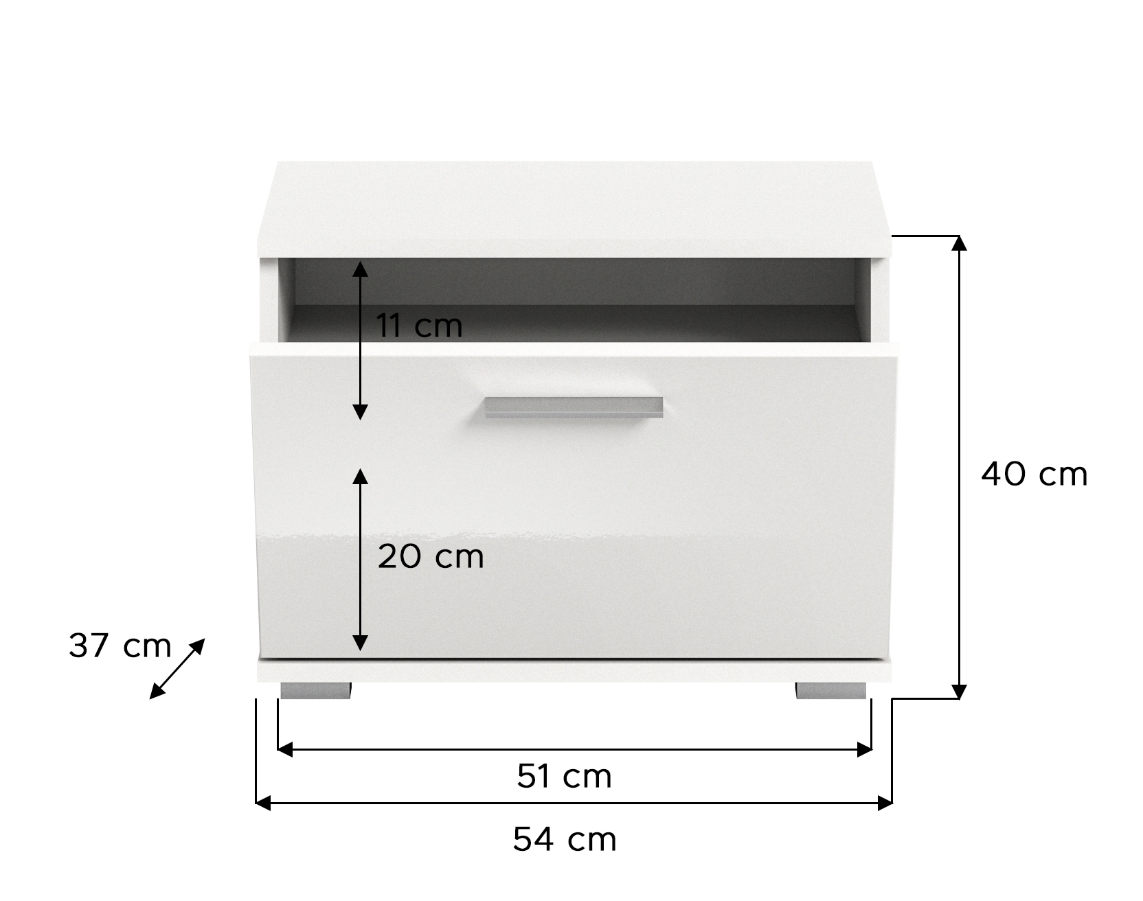 1 Schubank mit 1 Klappe und 1 Einlegeboden