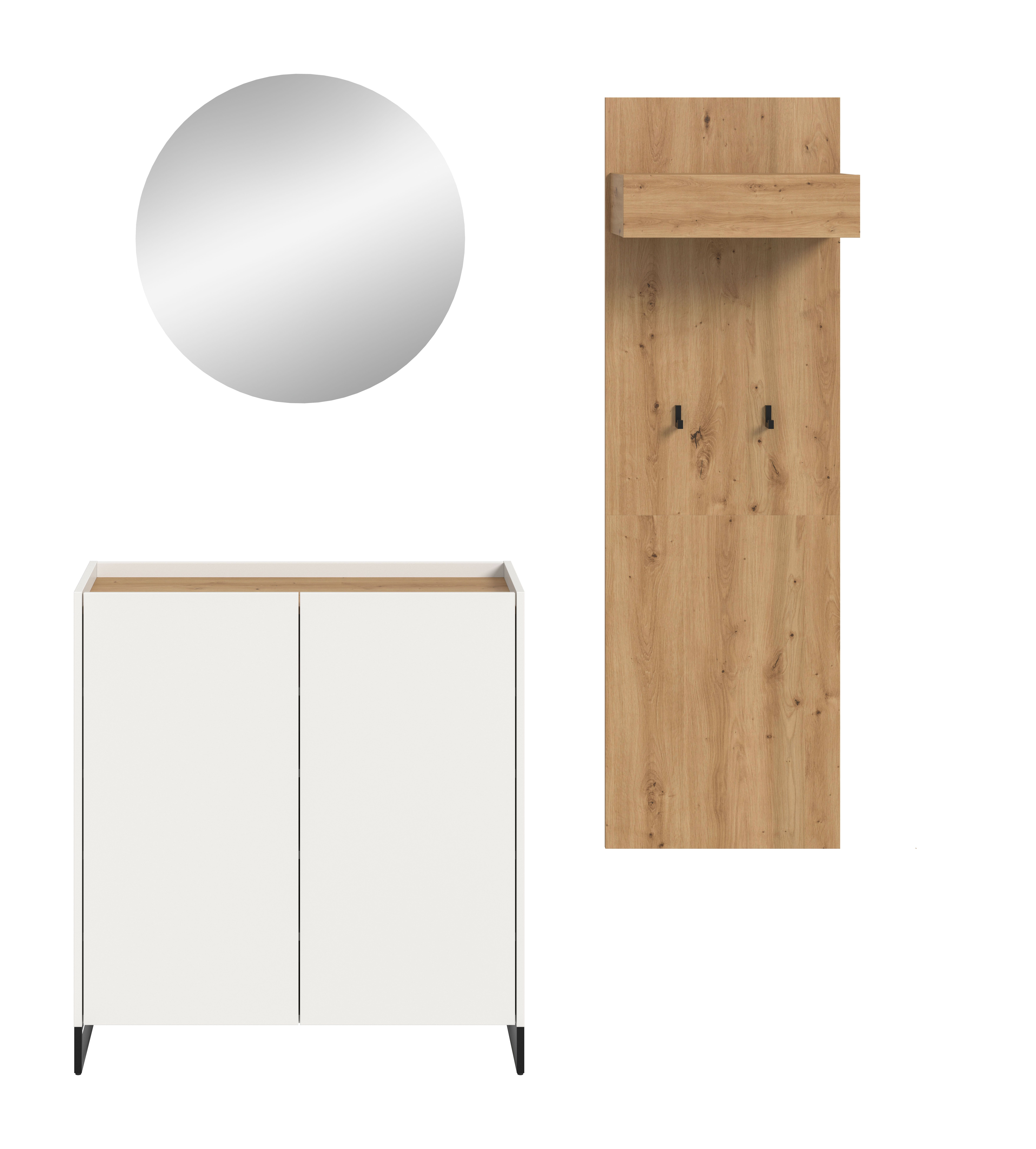- 3-teiliges Set, bestehend aus: 1x Schuhkommode, 1x Spiegel, 1x Garderobenpaneel