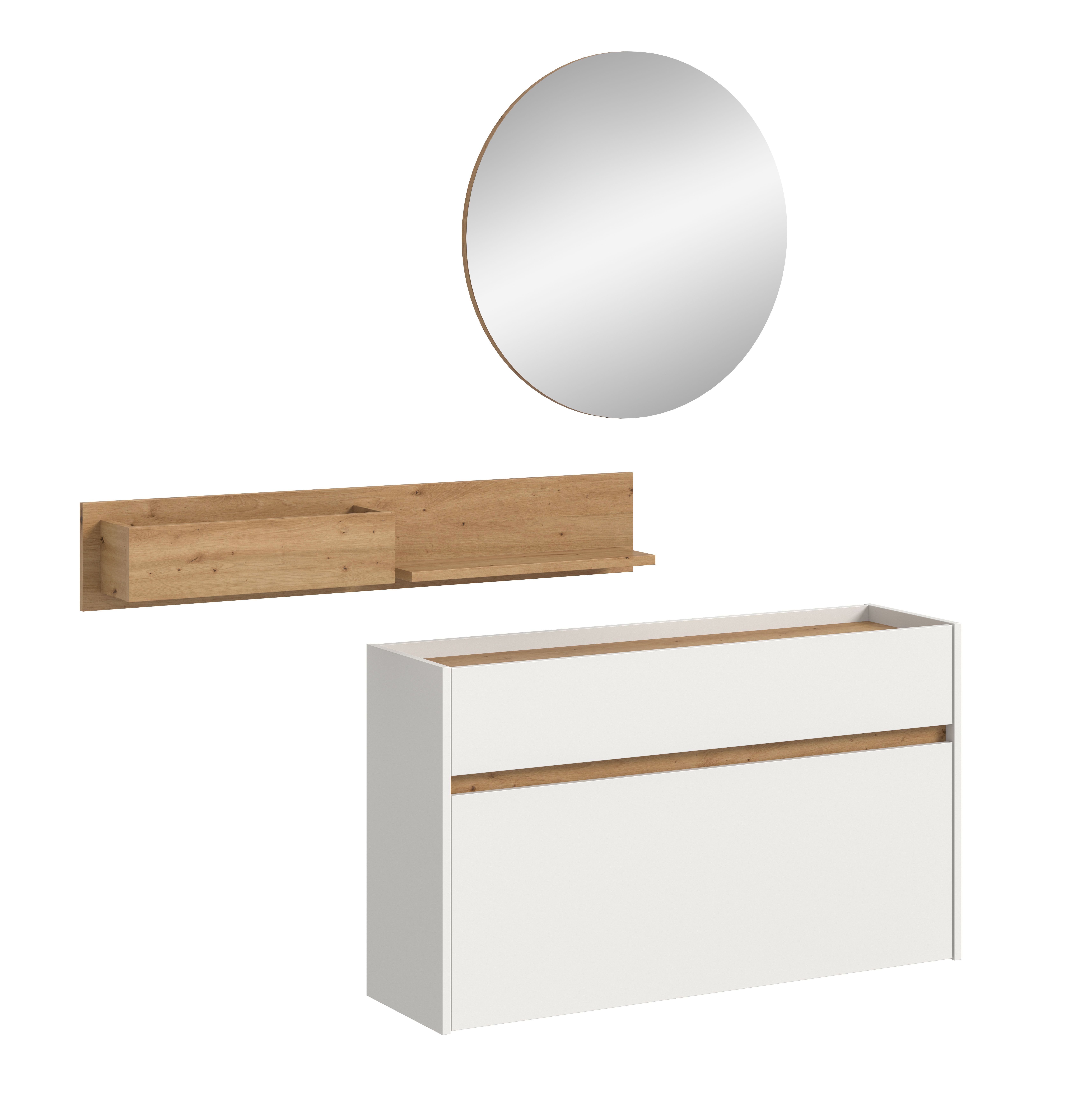 - 3-teiliges Set, bestehend aus: 1x Schuhkommode, 1x Hängeregal, 1x Spiegel