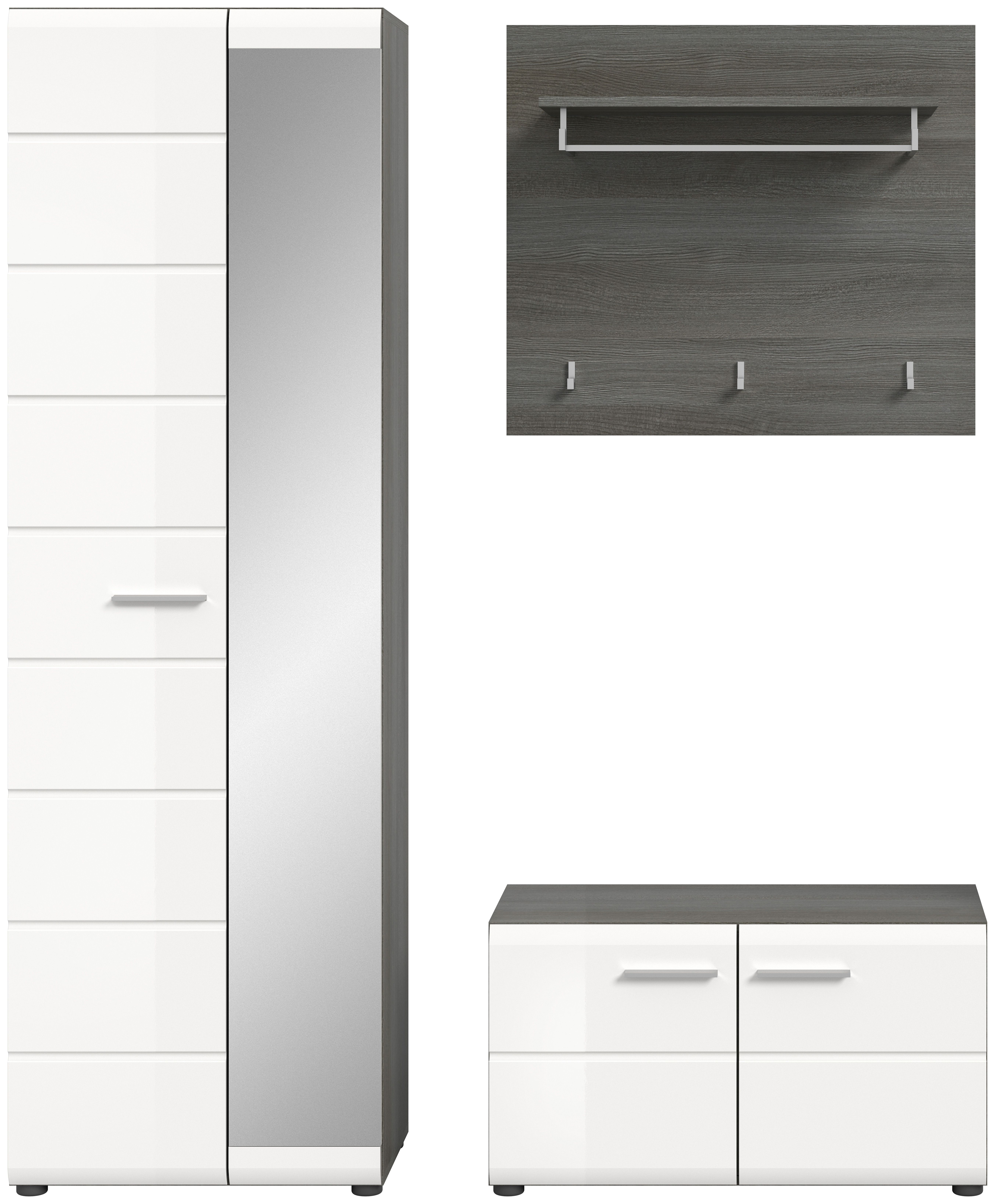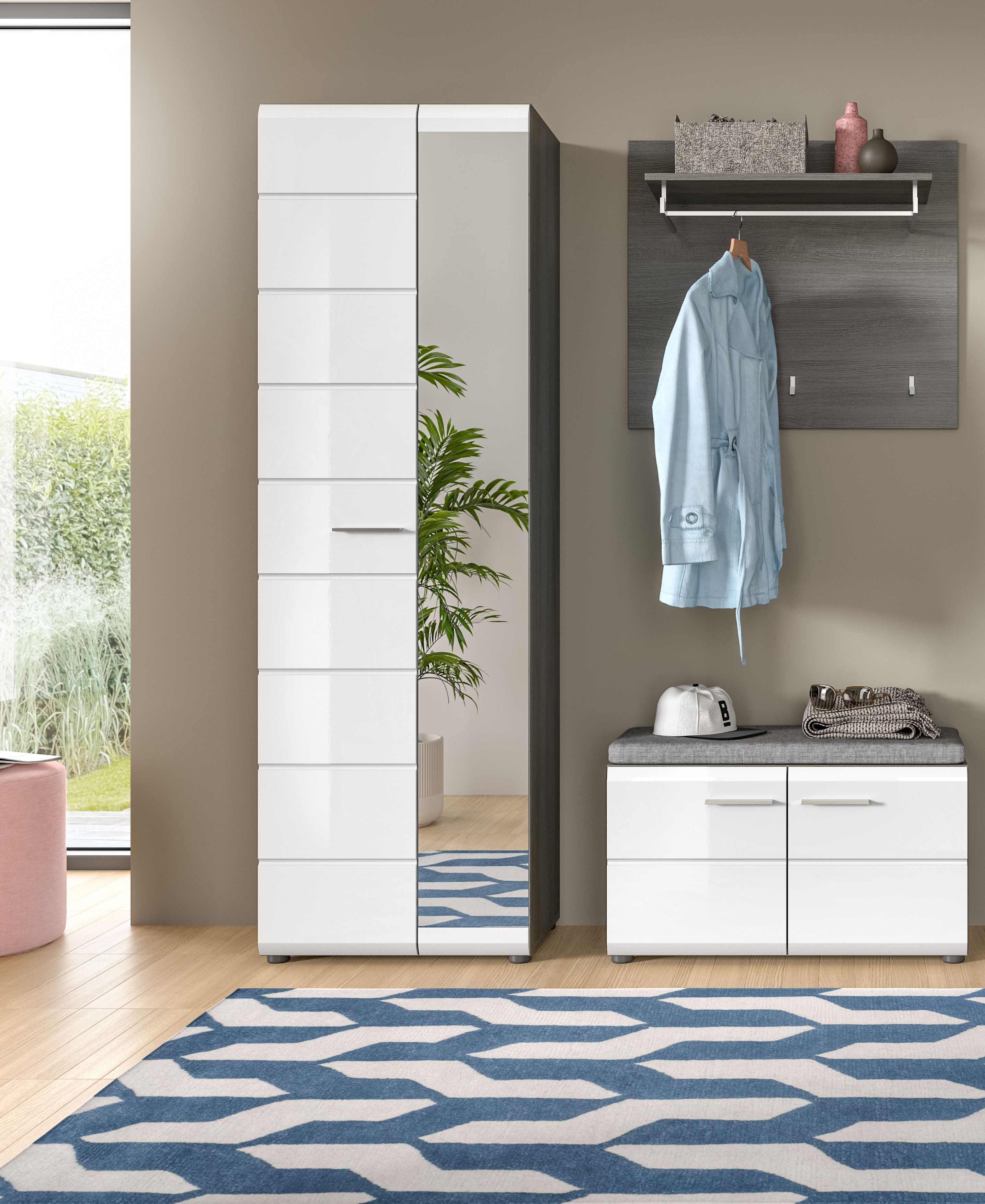 Lust auf eine moderne und stilvolle Garderobenkombination in Rauchsilber Nachbildung und weiß Hochglanz tiefzieh? In unserem Online-Shop findest du genau das – ein Möbelstück, das nicht nur deinen Eingangsbereich perfekt organisiert, sondern auch elegant gestaltet. Entdecke die perfekte Harmonie von Stil und Funktionalität und bereichere dein Zuhause mit dieser erstklassigen Garderobenkombination.