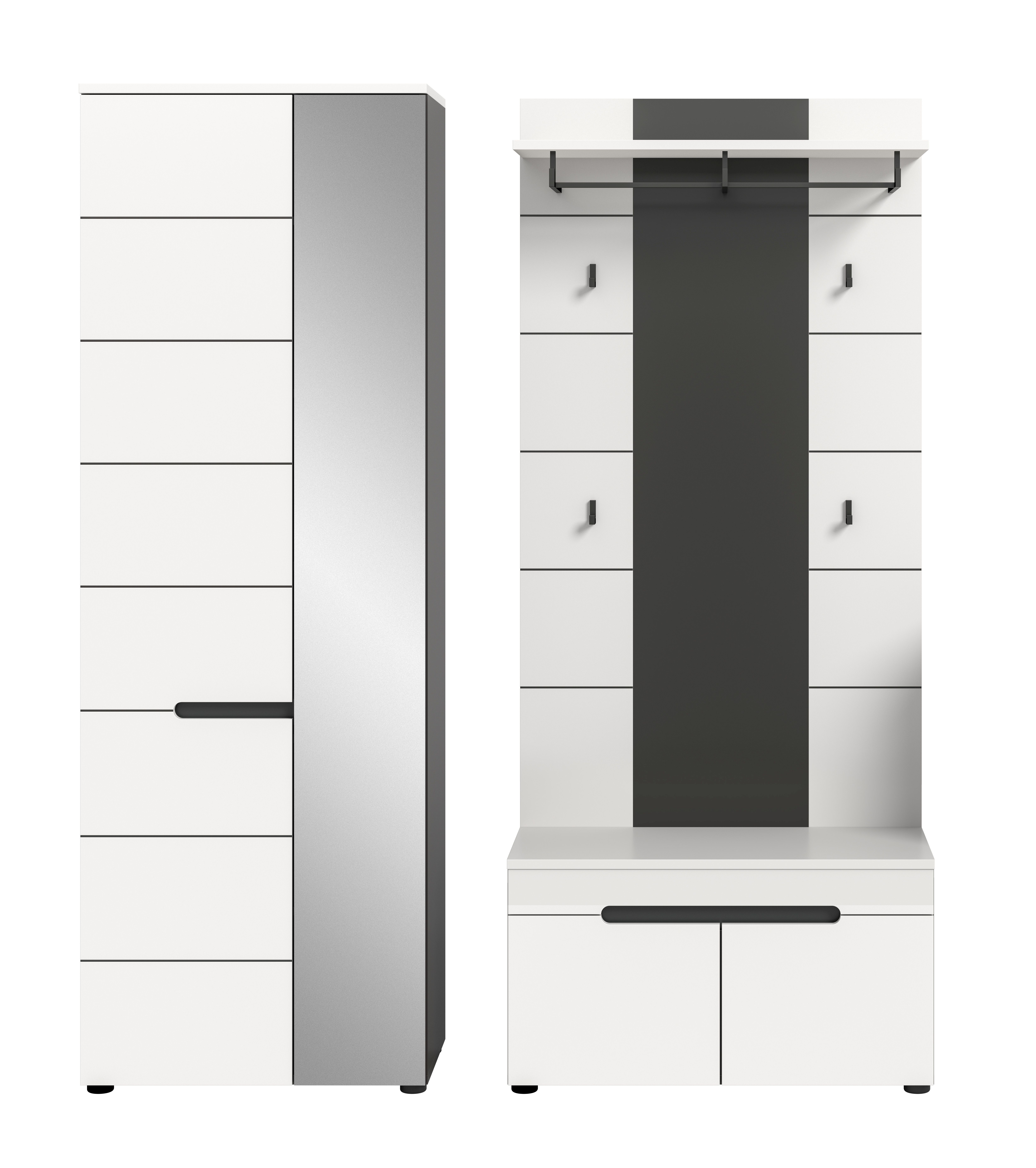 - 3 tlg. Set besteht aus: 1x Garderobenschrank, 1x Sitzbank, 1x Paneel