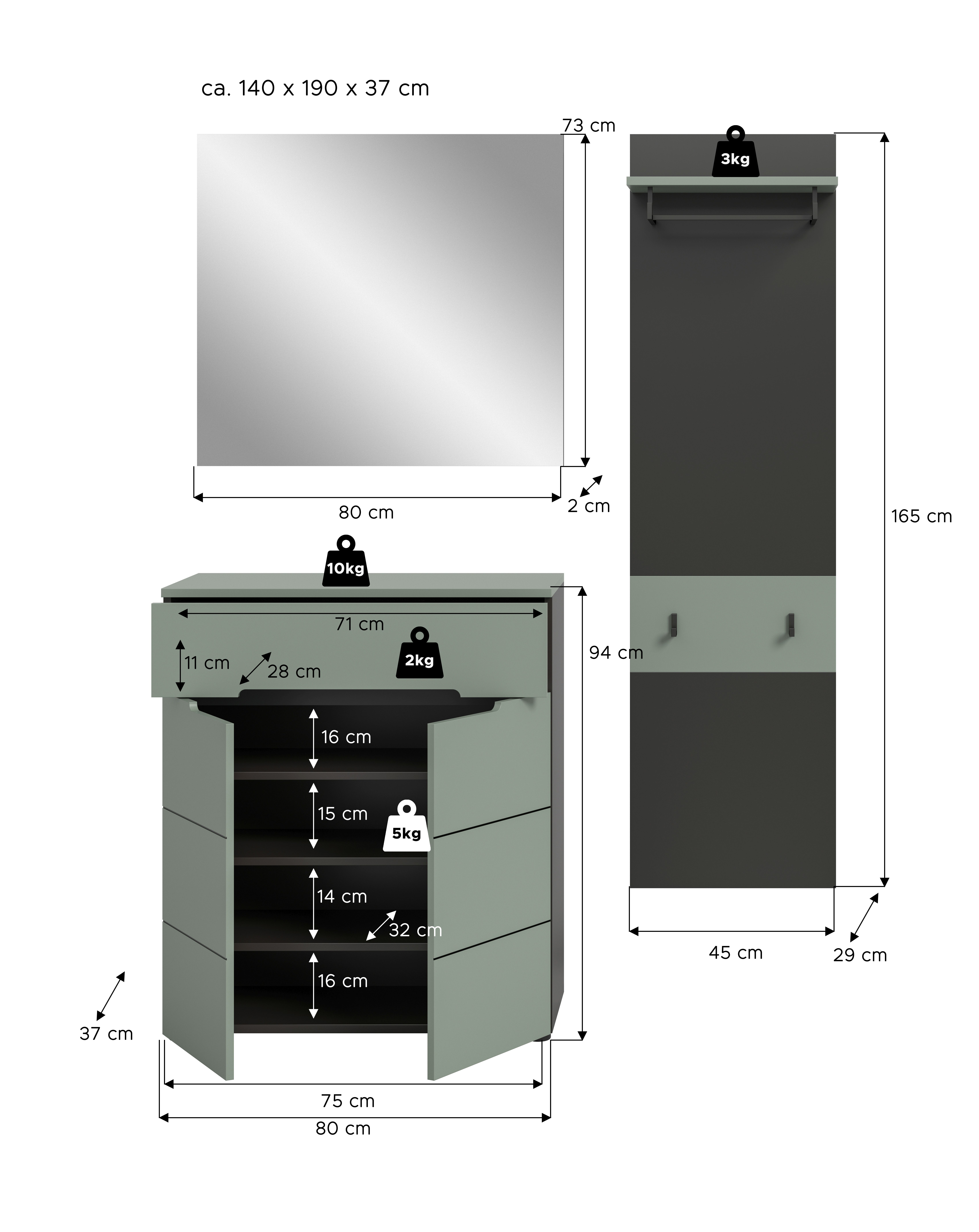 | Garderobenkombination | 140 | 190 | 37 |