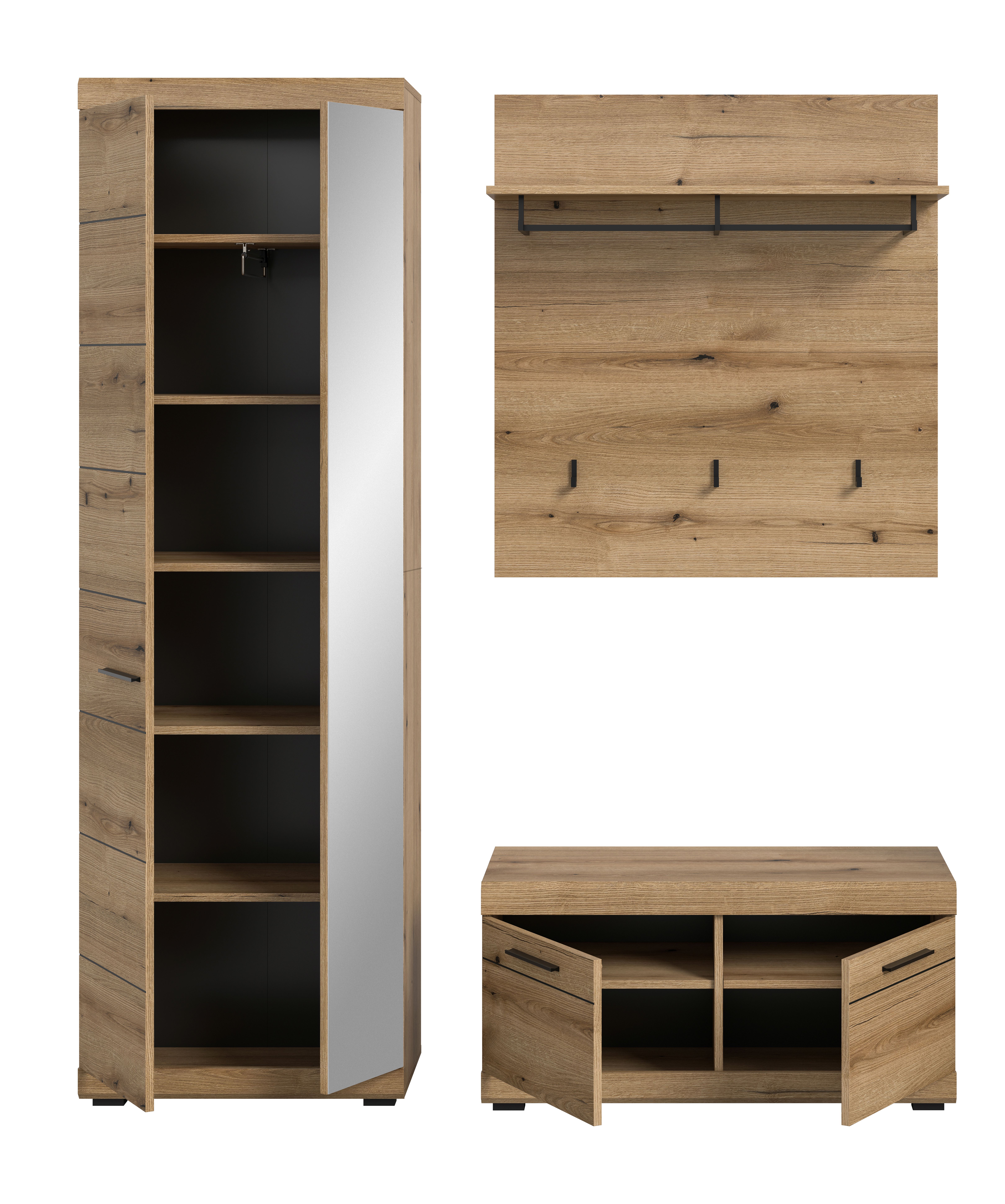 - 3-tlg. Set bestehend aus Garderobenschrank, Sitzbank und Paneel