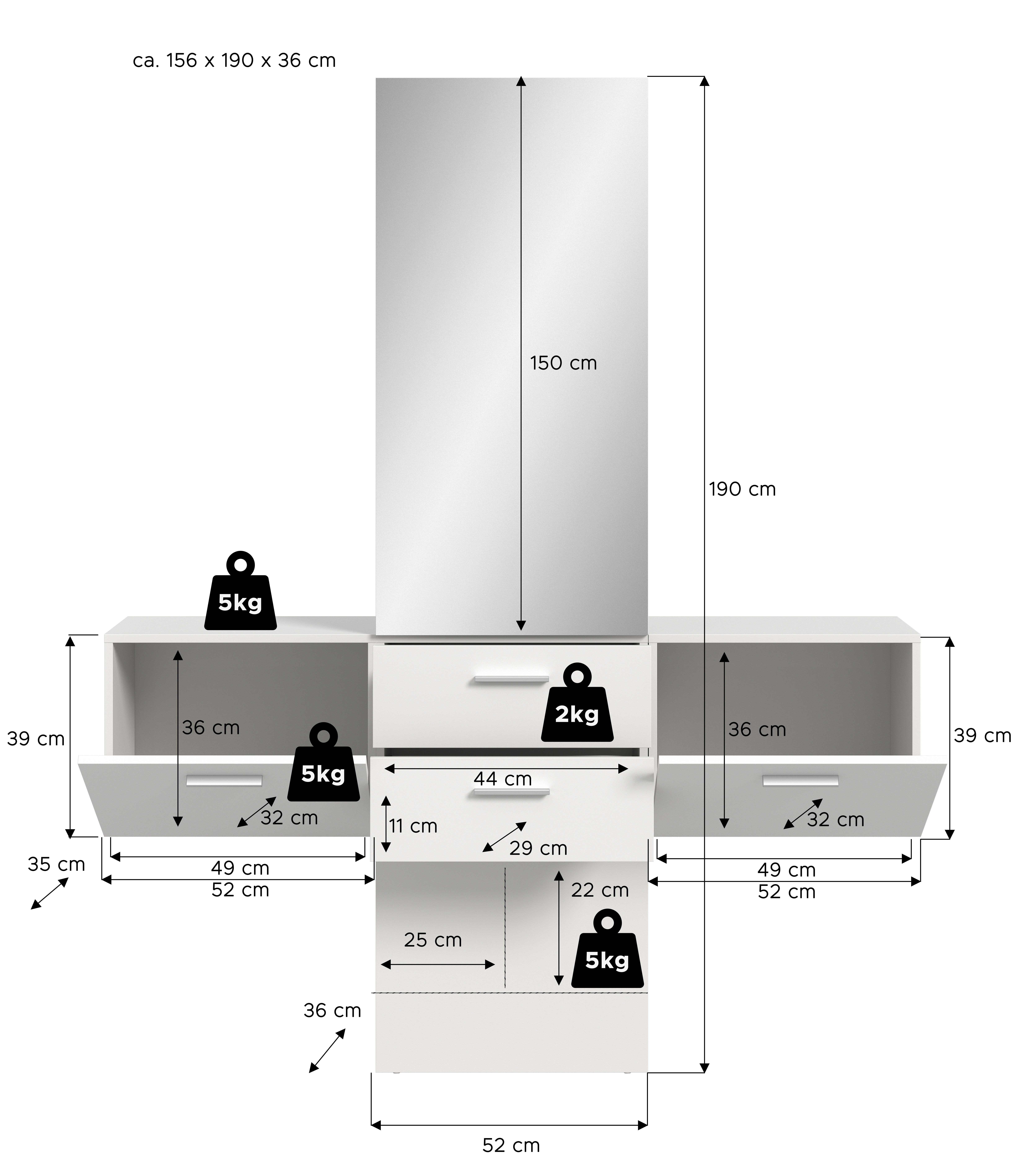 | Garderobenkombination | 156 | 190 | 36 |