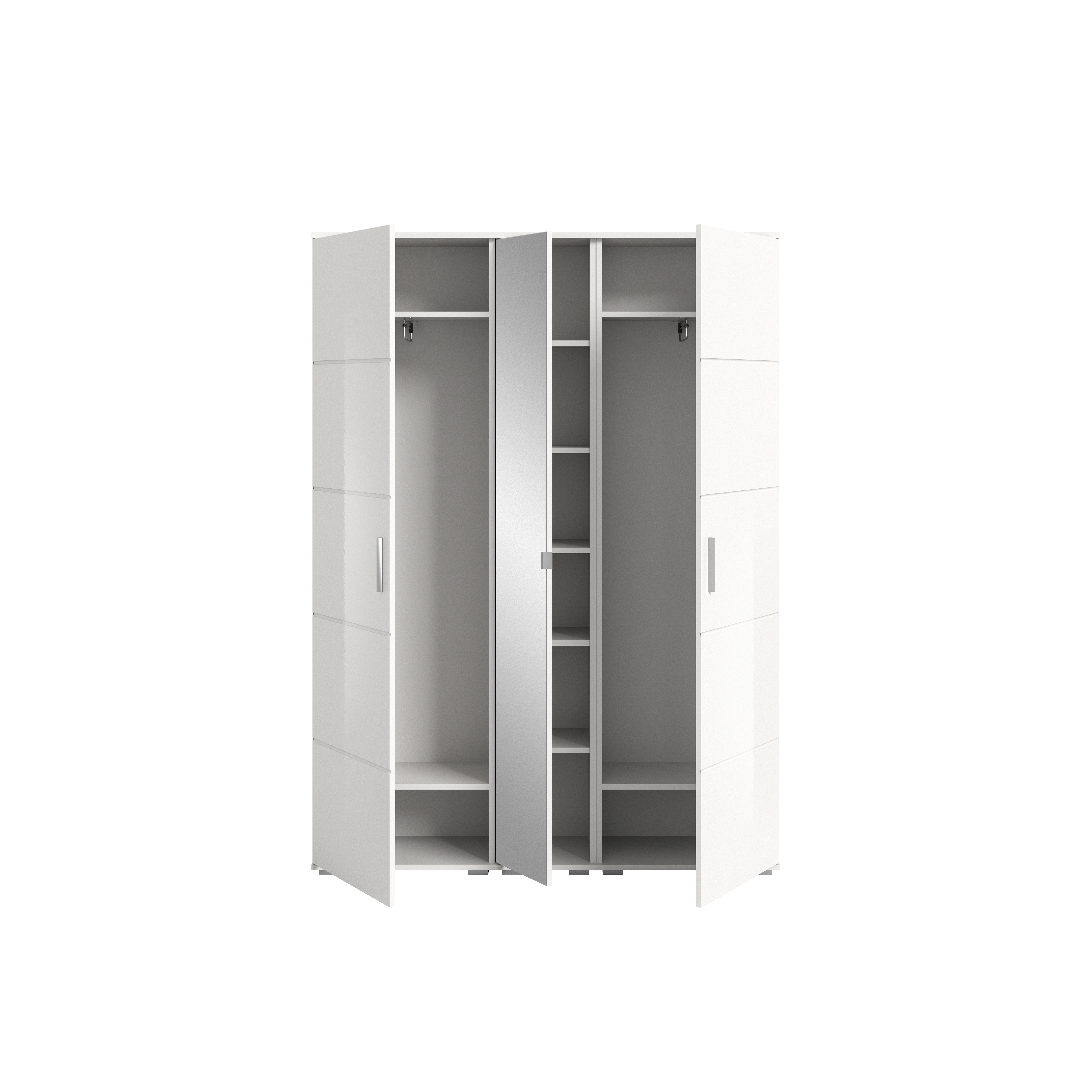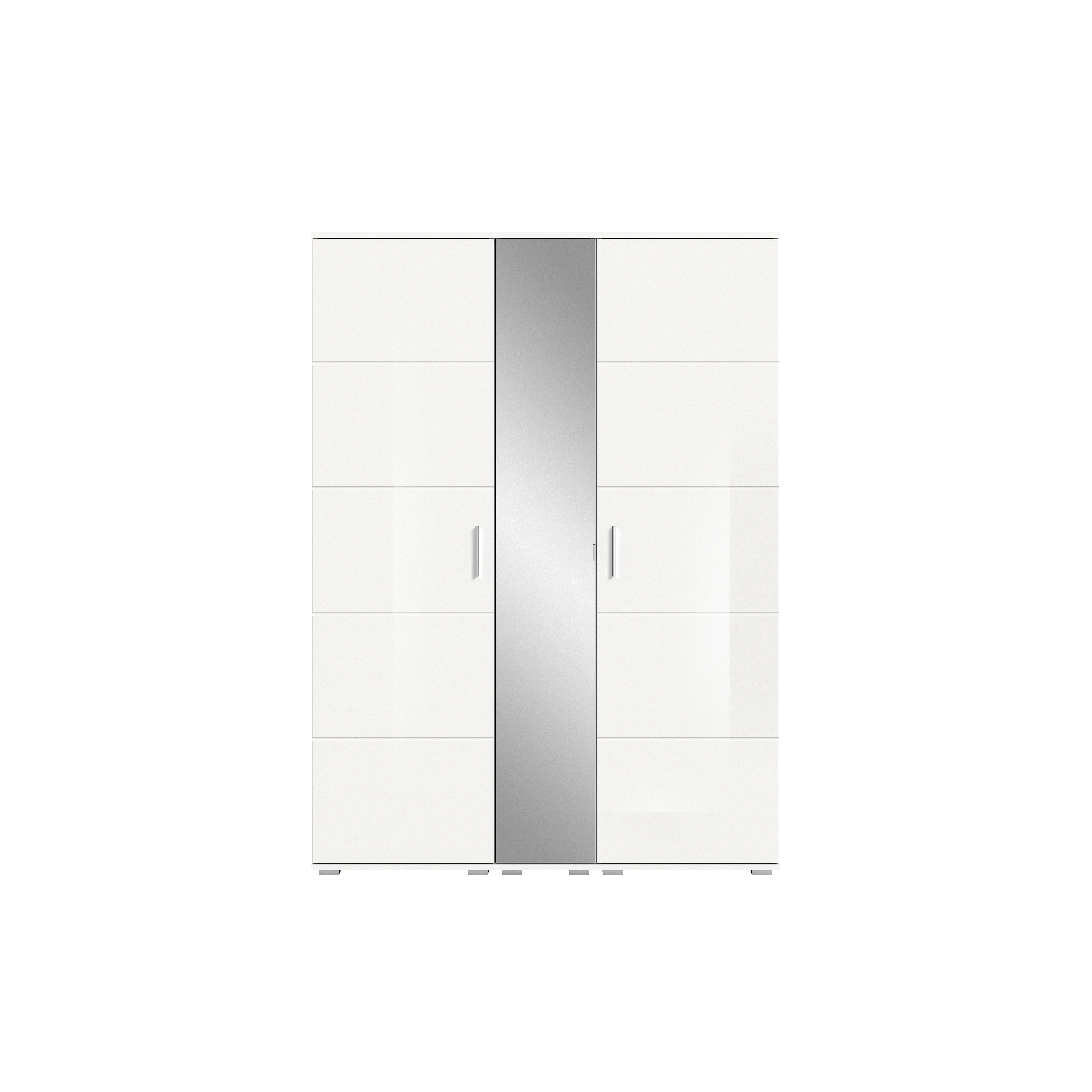 - Design/Stil: Die Garderobenkombination in Weiß Nachbildung und Weiß Hochglanz überzeugt mit ihrem modernen und eleganten Erscheinungsbild. Die Kombination aus glänzenden Fronten und einer matten Oberfläche verleiht der Garderobe ein ansprechendes Kontrastdesign, das sich perfekt in zeitgemäße Einrichtungskonzepte einfügt. Die klaren Linien und die minimalistische Gestaltung sorgen für eine zeitlose Eleganz, während die Griffe in Chromoptik einen Hauch von Raffinesse verleihen.