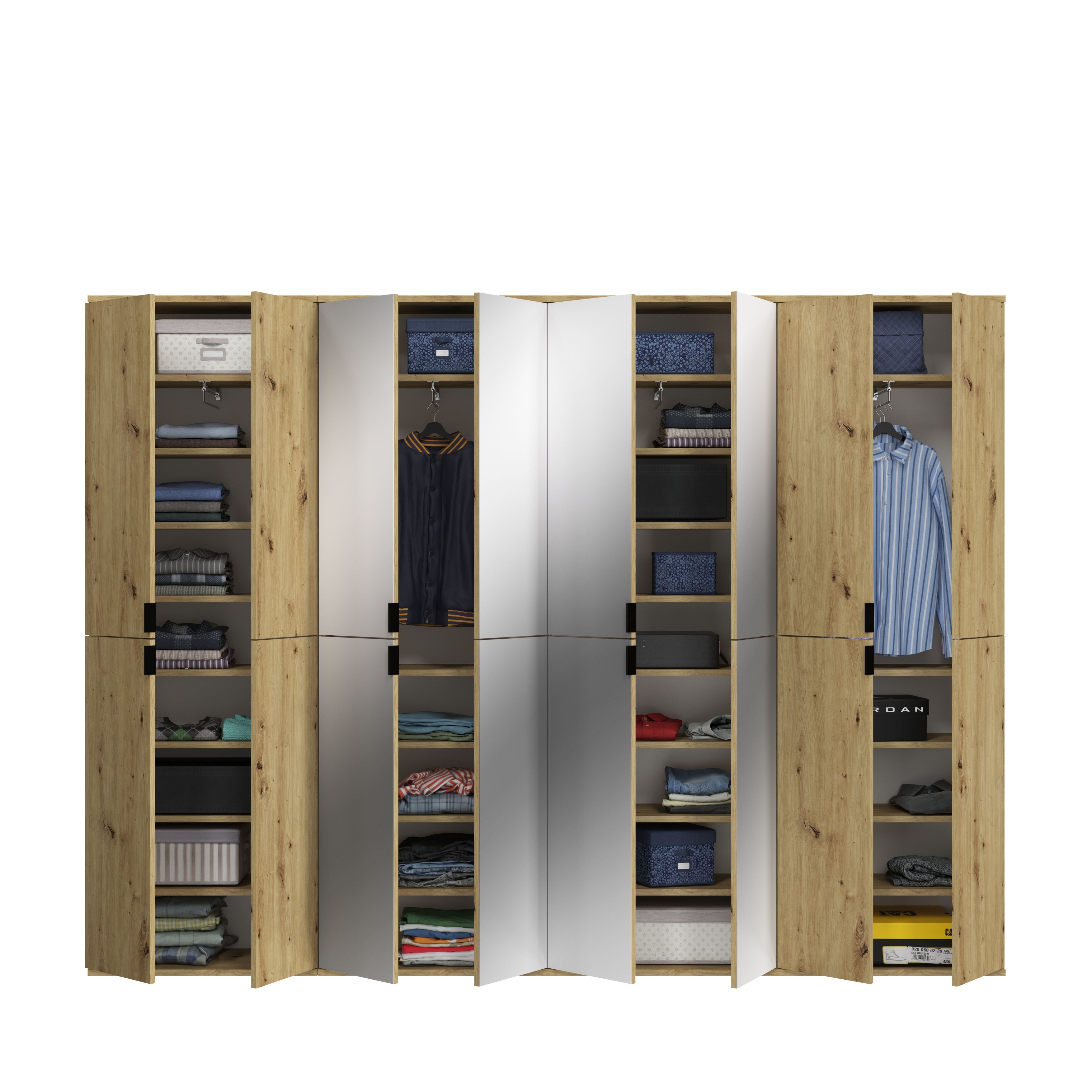 Optimieren Sie Ihren Flur, die Diele, den Hauswirtschaftsraum, das Büro und das Schlafzimmer mit unserer Garderobenkombination. Mit den Maßen 244x193x34 cm und einem eleganten Design in Artisan Holznachbildung und Spiegeltüren verleiht sie jedem Raum eine helle und moderne Atmosphäre. Holen Sie sich dieses praktische und stilvolle Möbelstück für eine organisierte und ästhetische Einrichtung.
