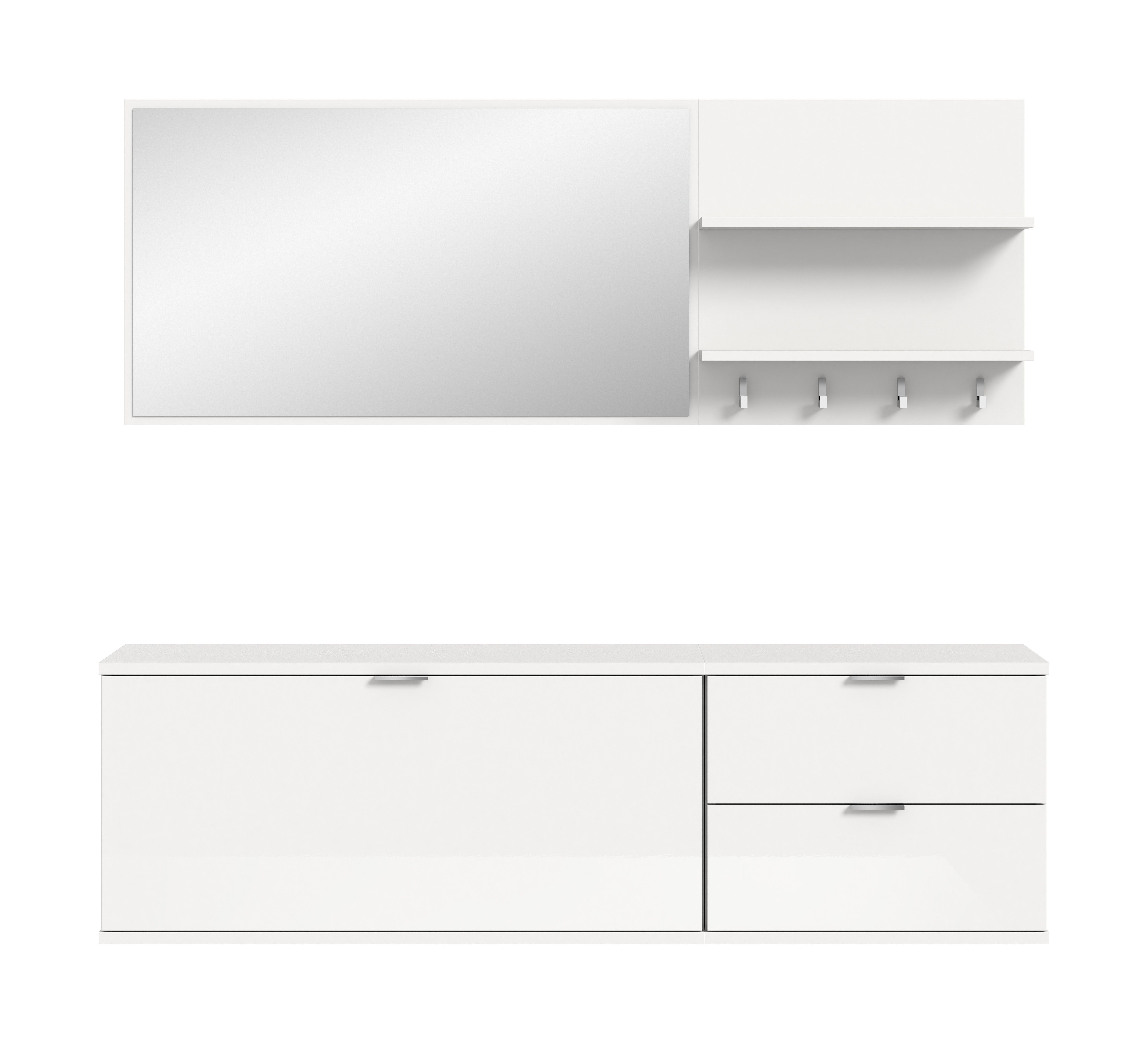 Bringen Sie frischen Wind in Ihren Eingangsbereich mit unserer eleganten Garderobenkombination (B/H/T: 144x191x37 cm) in strahlendem Weiß Hochglanz. Dieses durchdachte Set vereint modernes Design mit praktischen Lösungen und ist perfekt für kleine bis mittlere Flure. Die Kombination umfasst einen großen Spiegel, der den Raum optisch weitet und Ihnen einen letzten Blick vor dem Verlassen des Hauses ermöglicht. Die beiden Sitzbänke/Kommoden bieten nicht nur einen bequemen Platz zum Anziehen, sondern auch cleveren Stauraum für Schuhe und Accessoires. Das integrierte Paneel mit Haken sorgt dafür, dass Jacken und Taschen immer griffbereit sind und Ihren Flur ordentlich erscheinen lassen. Diese Garderobenkombination ist ideal für alle, die Wert auf Stil und Funktionalität legen. Verwandeln Sie Ihren Flur in einen einladenden Raum, der Ordnung und Eleganz ausstrahlt. Gönnen Sie sich diese moderne Garderobenkombination und genießen Sie einen stylishen Eingangsbereich, der seine Gäste begeistert!