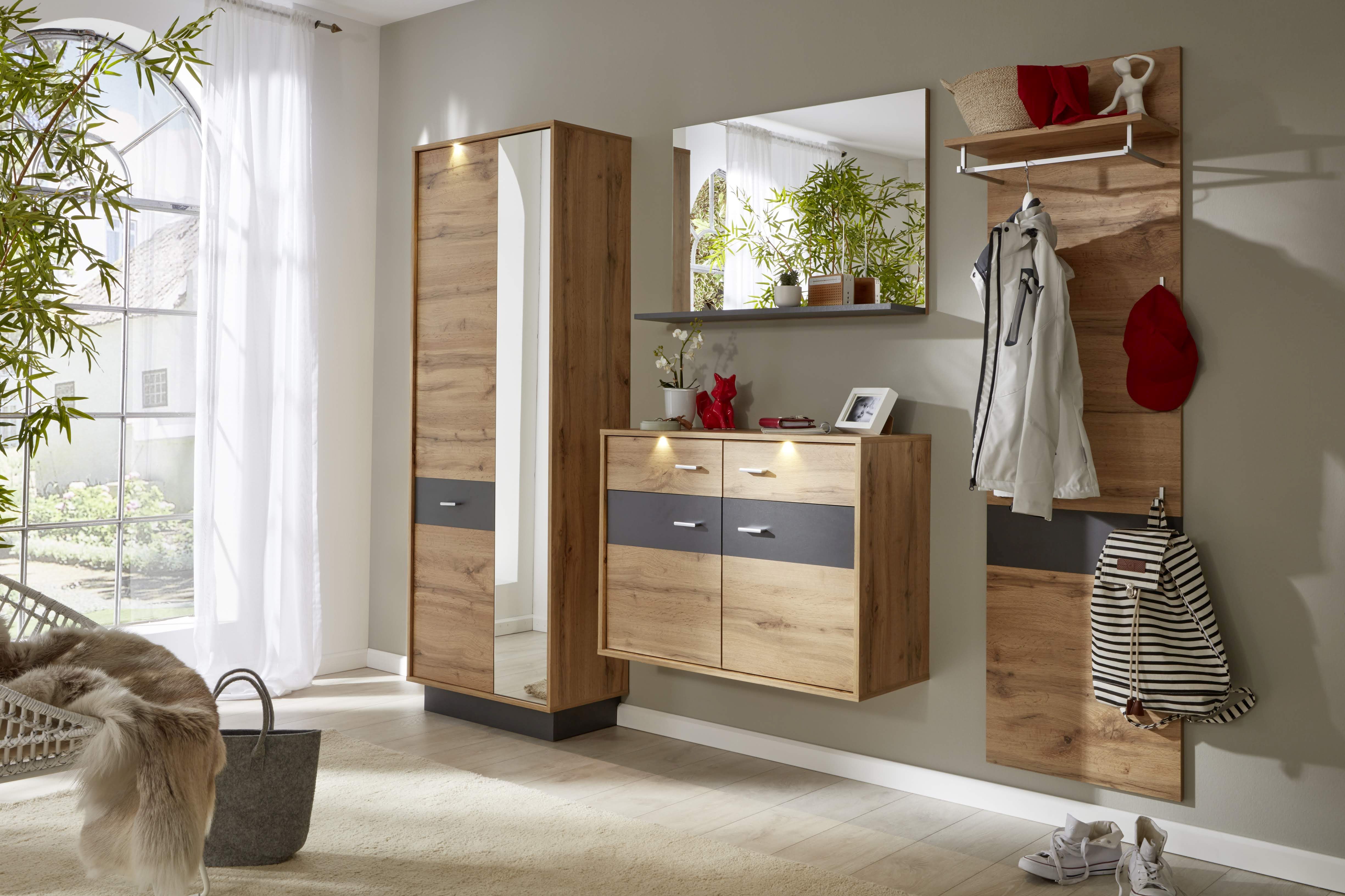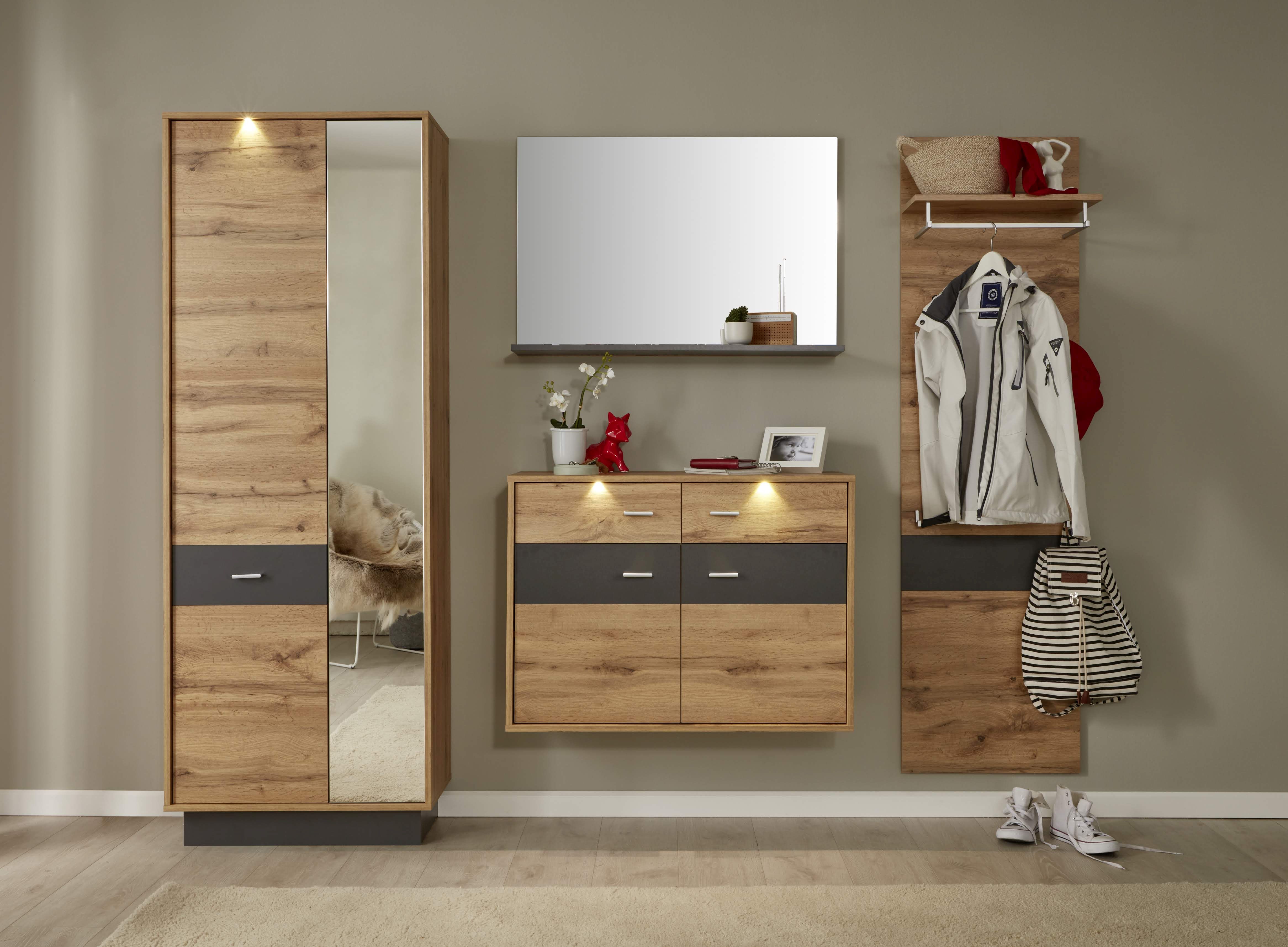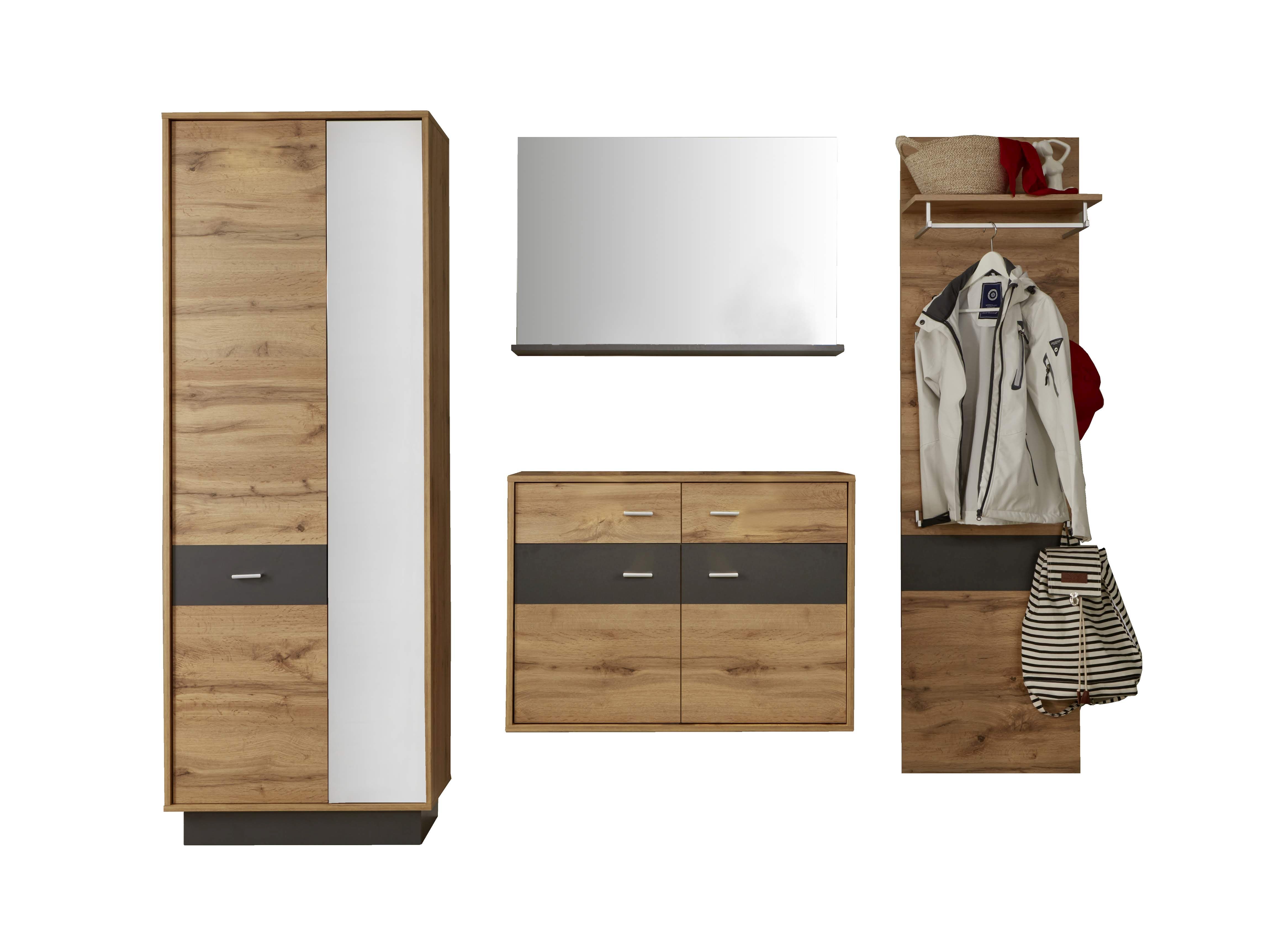 1 Garderobenpaneel mit 1 Hutablage, 1 Kleiderstange und 4 Haken