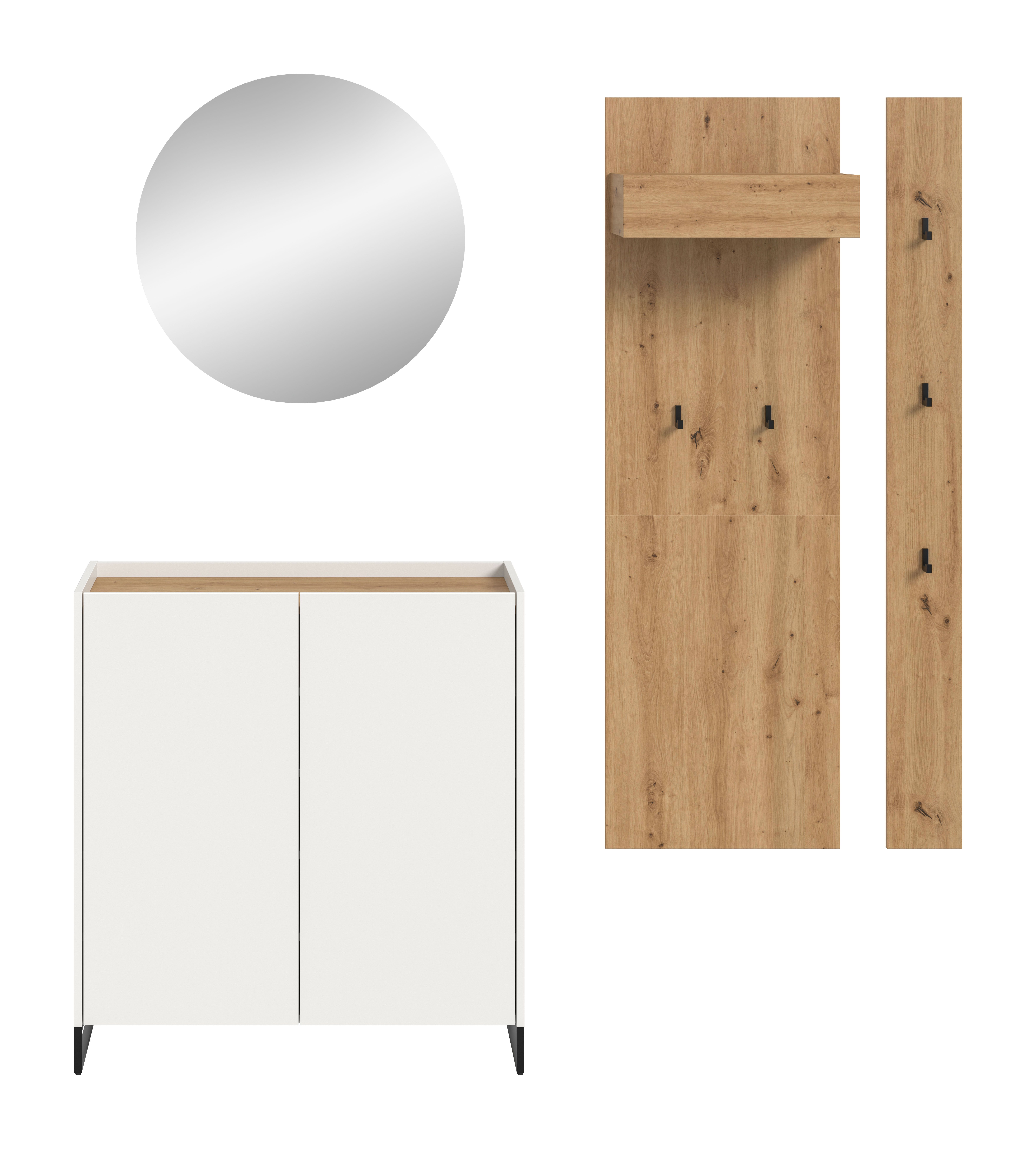 - 4-teiliges Set, bestehend aus: 1x Schuhkommode, 1x Spiegel, 1x Garderobenpaneel, 1x Garderobenpaneel