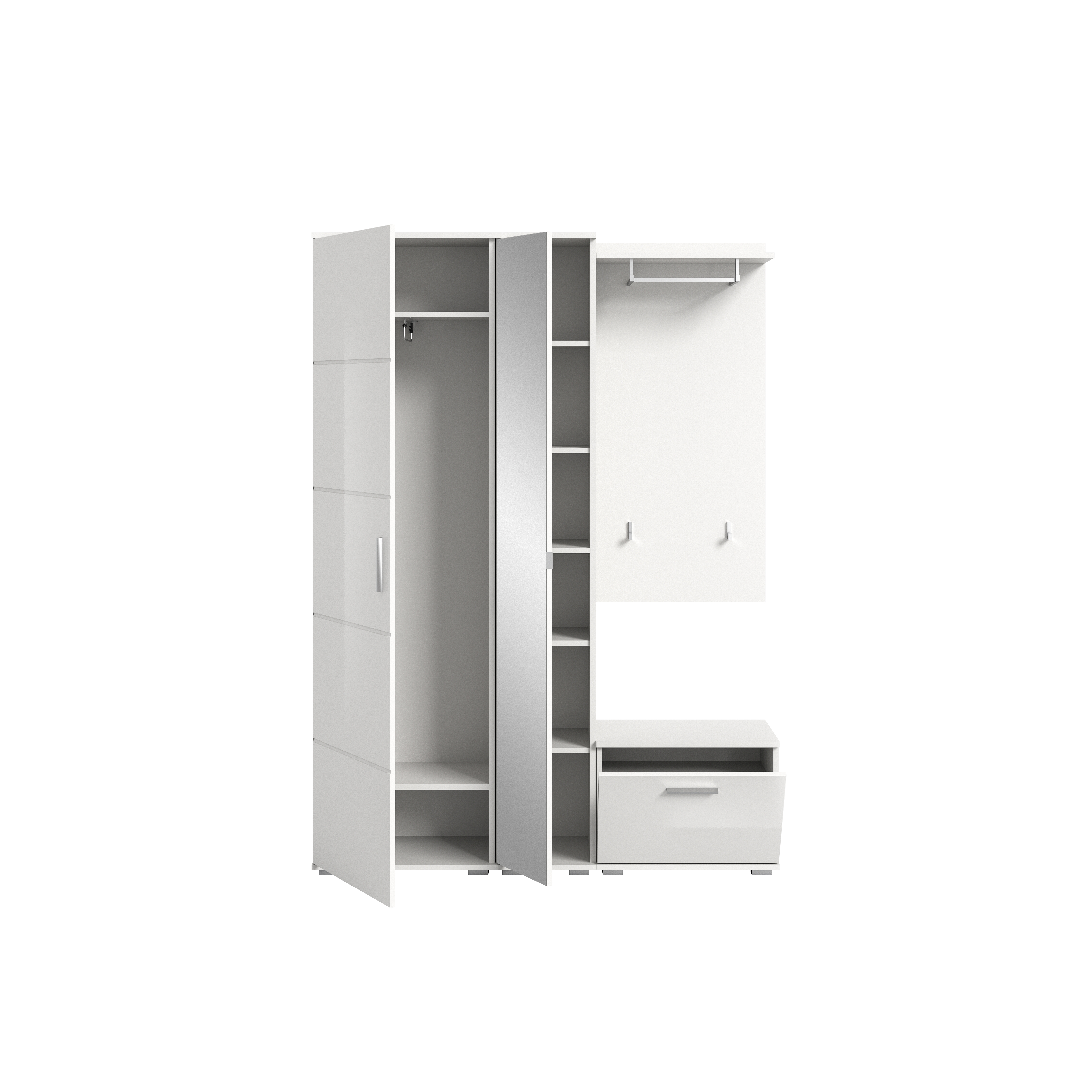 Erweitern Sie den Eingangsbereich Ihres Zuhauses mit unserer eleganten Garderobenkombination in Weiß Nachbildung und Weiß Hochglanz für Flur und Diele. Durchdacht gestaltet und mit großzügigem Stauraum ausgestattet, bietet sie nicht nur praktische Aufbewahrungsmöglichkeiten, sondern verleiht Ihrem Raum auch eine zeitlose Ästhetik. Entdecken Sie jetzt dieses stilvolle Möbelstück und schaffen Sie einen einladenden Empfangsbereich für Ihre Gäste.