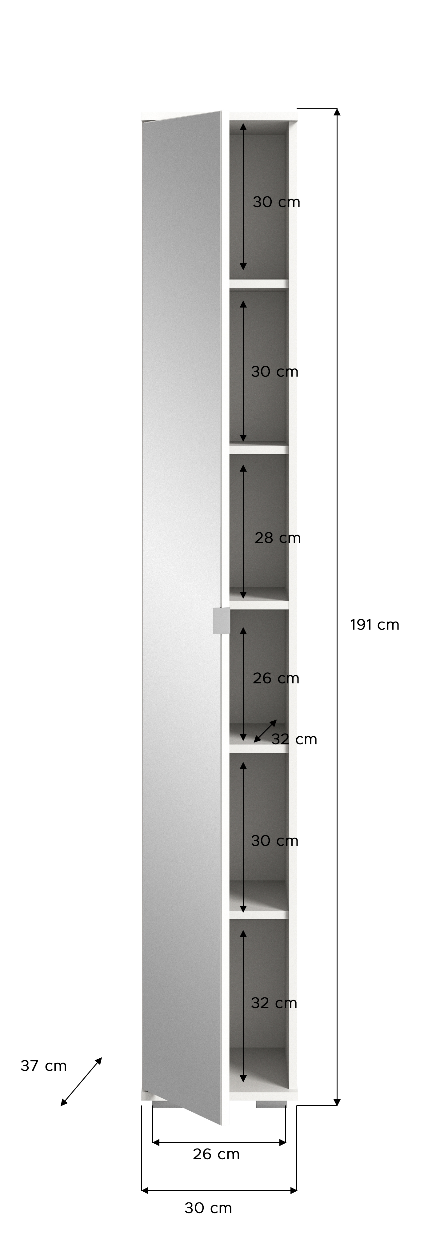 | Garderobenschrank mit Spiegeltür | 30 | 191 | 37 |