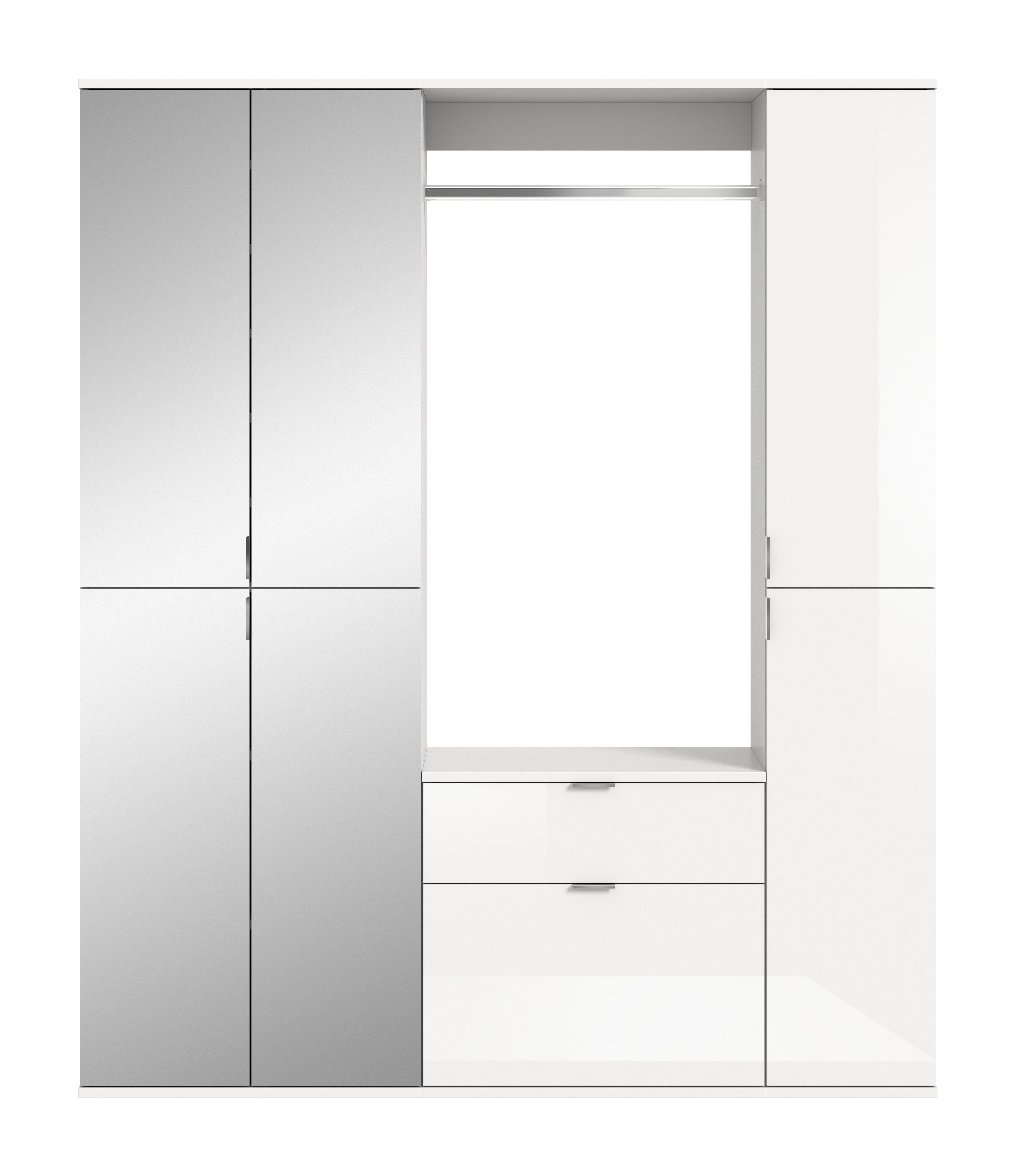 1 Garderobenschrank mit 2 Türen mit Spiegel, 7 Einlegeböden, 1 Konstruktionsboden und 1 Kleiderstange
