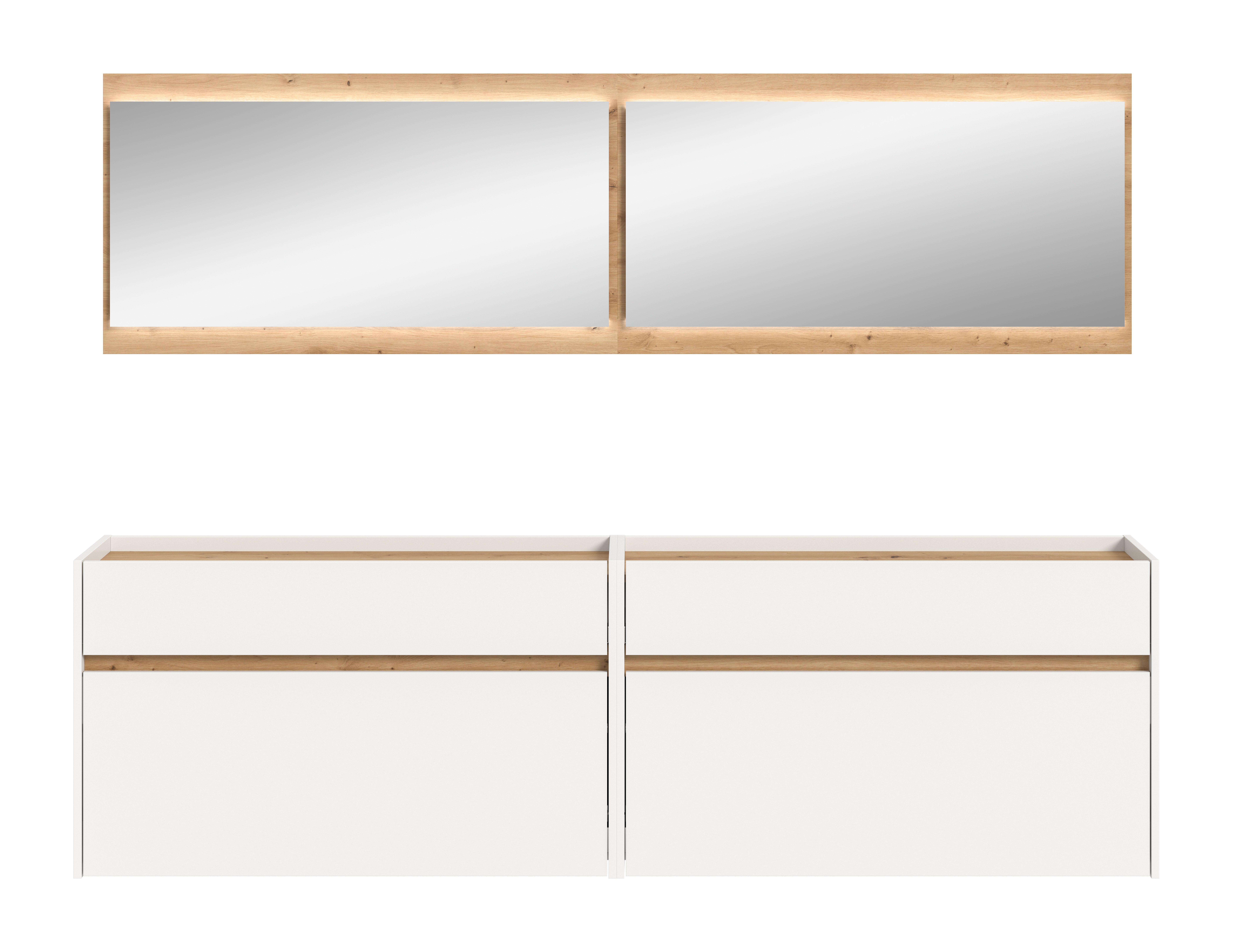 Front: Weiß kombiniert mit Artisan Eiche Holznachbildung / Spiegel
