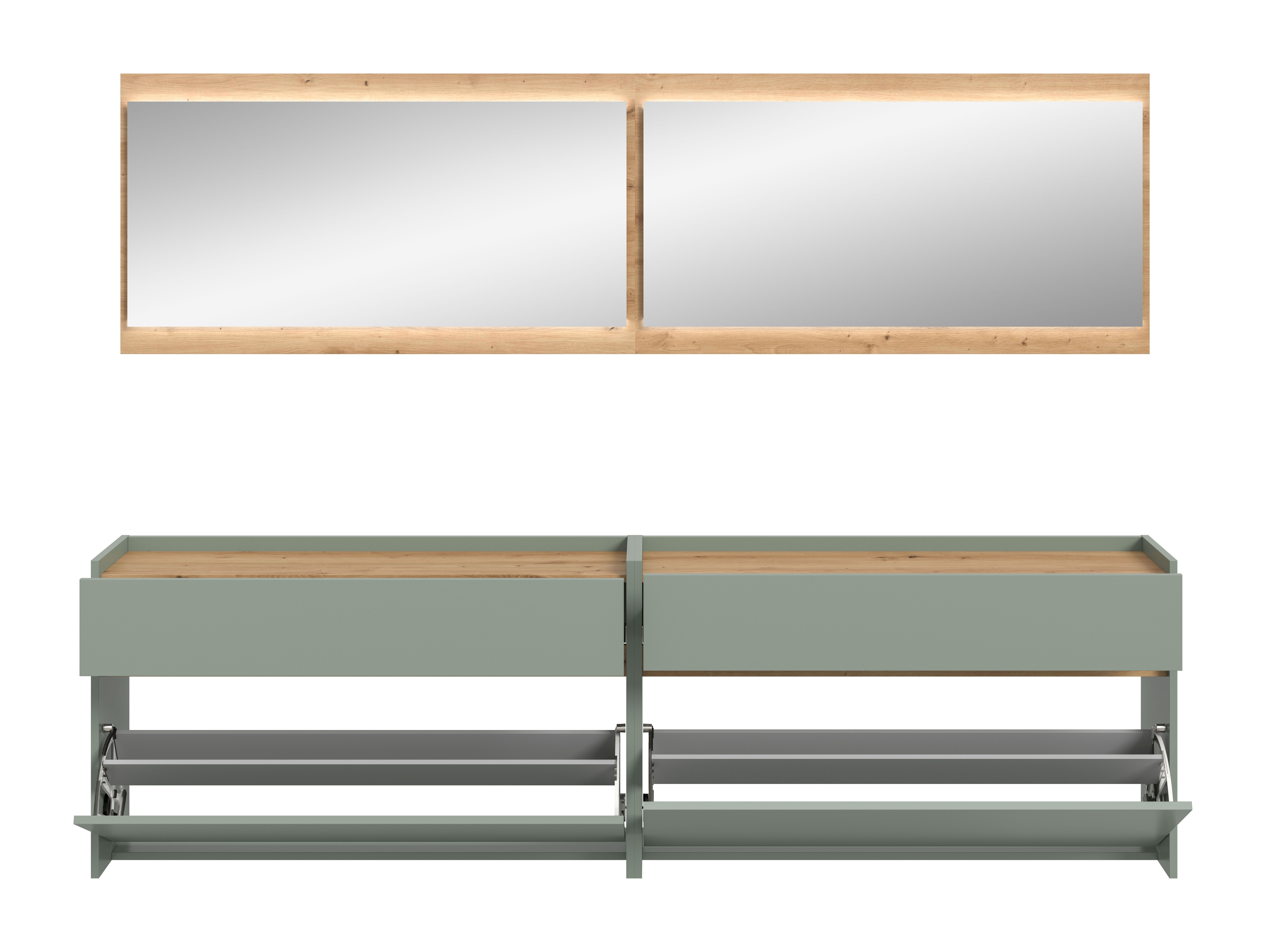 Front: Salbei kombiniert mit Artisan Eiche Holznachbildung / Spiegel
