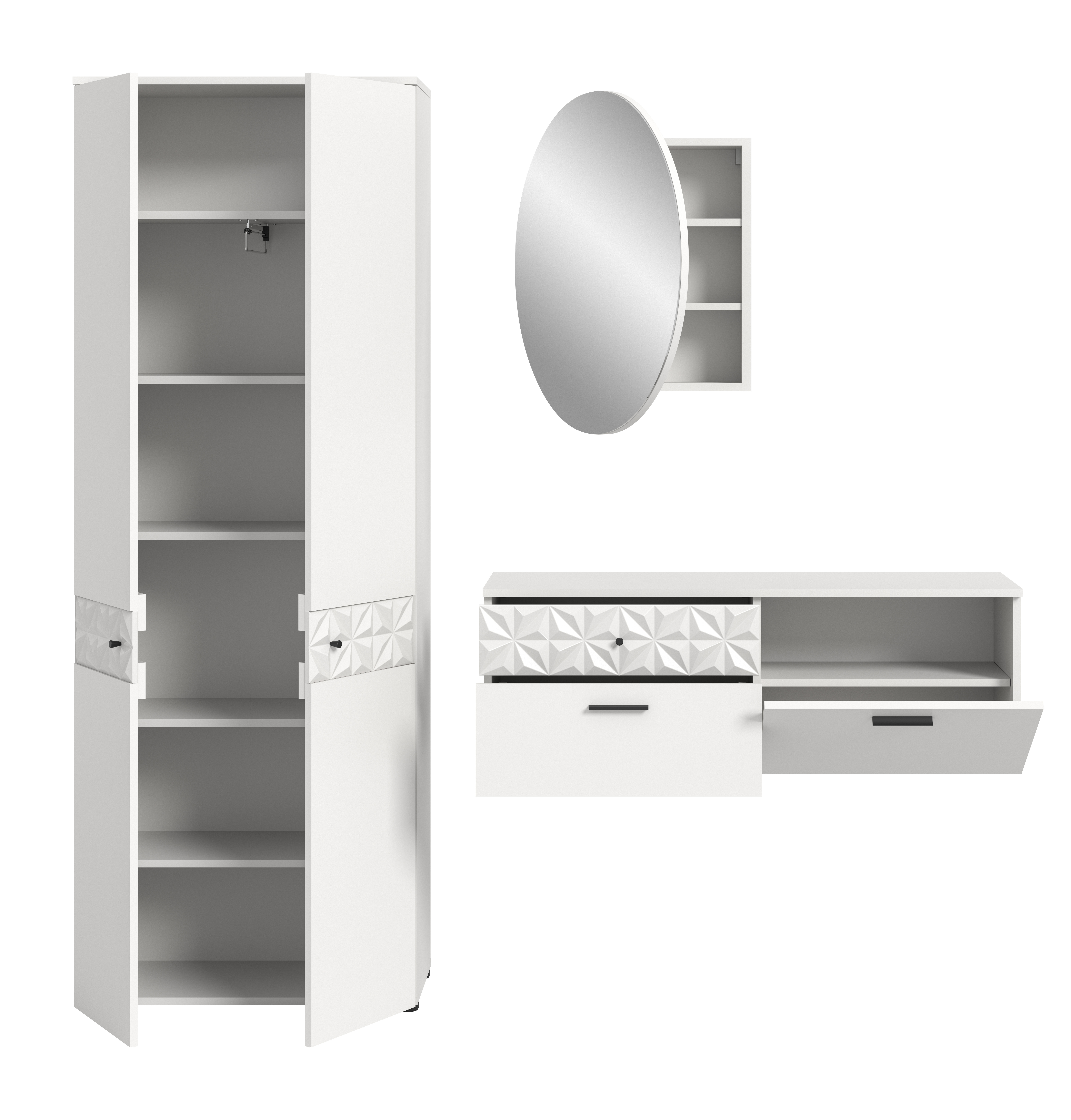 - Design/Stil: Die Garderobenkombination in Weiß Nachbildung und Weiß Hochglanz überzeugt mit ihrem modernen und eleganten Erscheinungsbild. Die hochwertige Rillenoptik verleiht den Möbeln einen Hauch von Raffinesse.