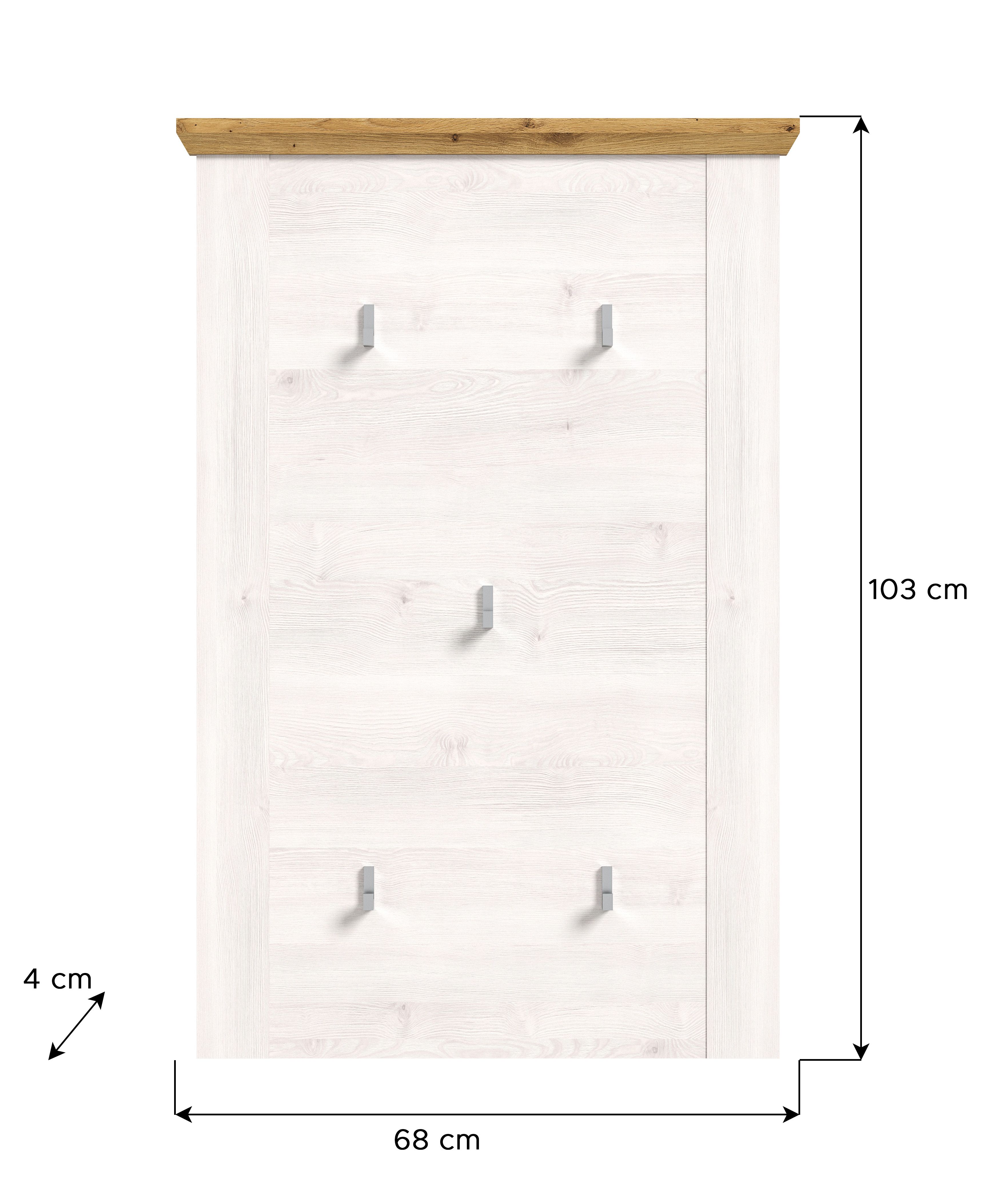 Bereichere Deinen Flur oder Deine Diele mit unserem praktischen Garderobenpaneel in Sibiu Lärche Nachbildung. Dank der kompakten Größe von 68x103x4 cm bietet das Garderobenpaneel eine optimale Lösung zur Aufbewahrung von Jacken und Accessoires.