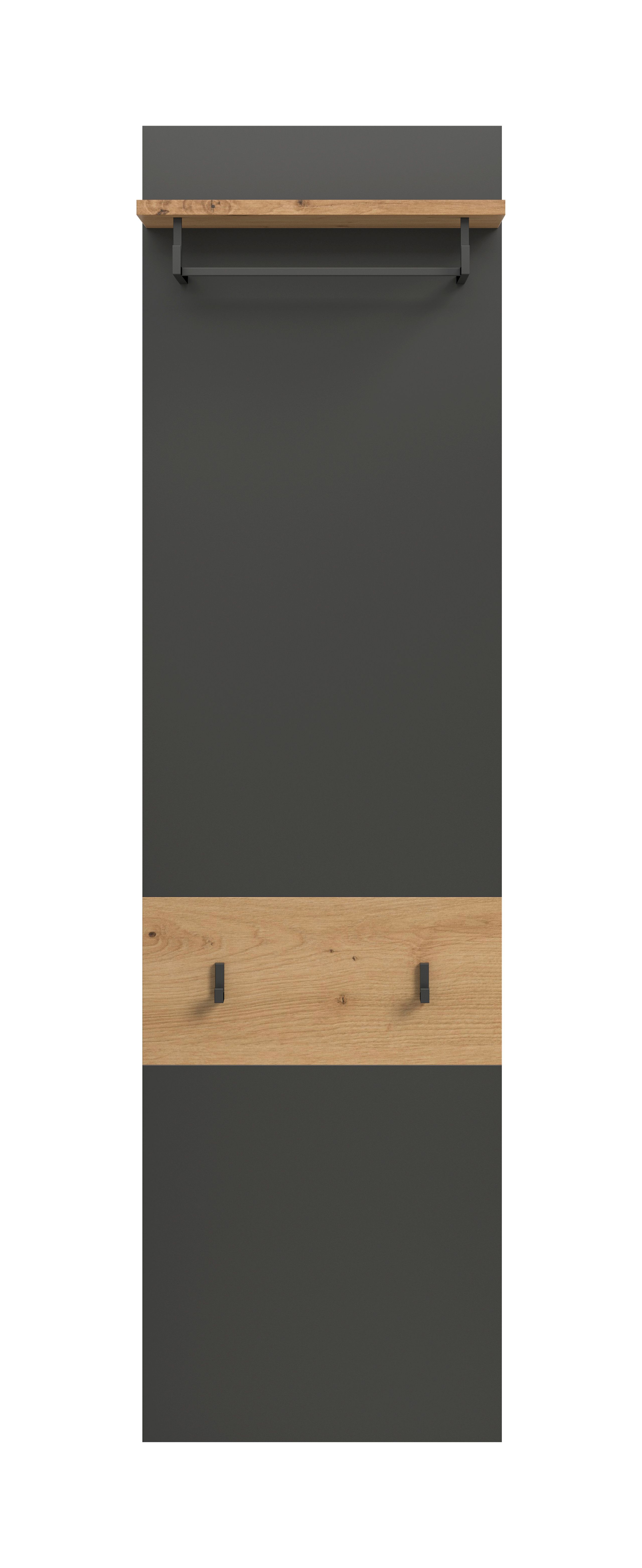 Das Paneel (B/H/T: 45x165x29 cm) in artisanfarbiger Nachbildung ist eine elegante und praktische Lösung für Ihre Garderobe. Mit einer Höhe von 165 cm bietet es ausreichend Platz für Ihre Jacken, Taschen und Accessoires. Die stilvollen Haken und Ablageflächen sorgen für einen aufgeräumten Eingangsbereich und machen das Aufhängen von Gegenständen zum Kinderspiel. Das moderne Design und die helle Oberfläche fügen sich harmonisch in jedes Wohnambiente ein, während die kompakte Bauweise auch in schmalen Fluren hervorragend zur Geltung kommt. Verleihen Sie Ihrem Zuhause einen einladenden Look und schaffen Sie Ordnung mit diesem funktionalen Paneel!