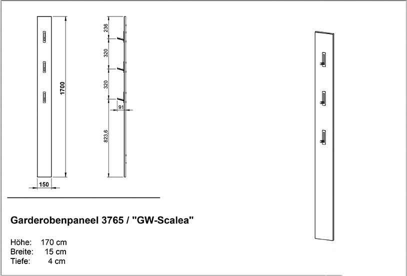 | Garderobenpaneel | 15 | 170 | 3 |