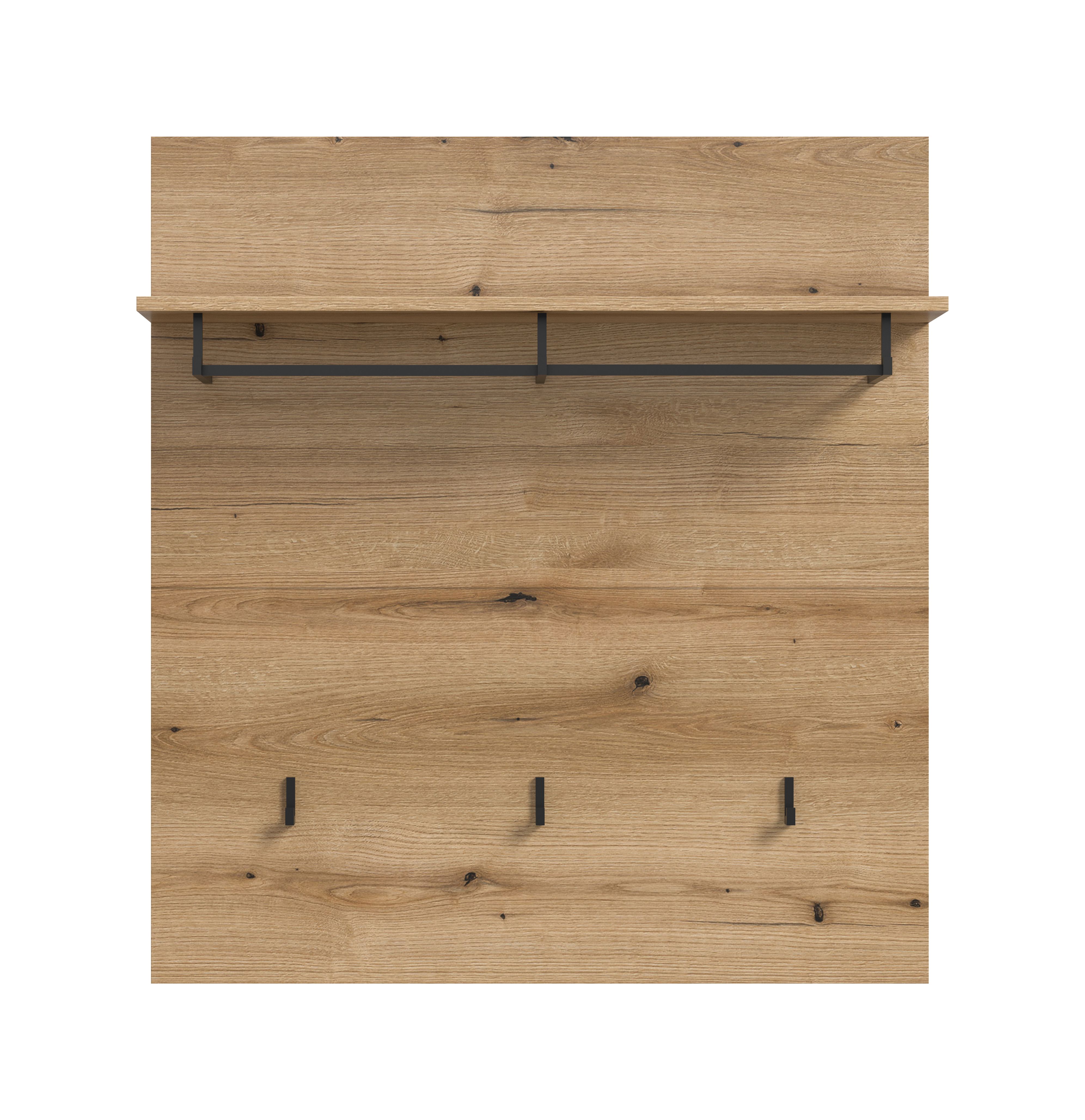 Entdecke unser Garderobenpaneel in Evoke Eiche Holznachbildung – die perfekte Lösung für einen organisierten Eingangsbereich! Mit den Maßen von 90 cm Breite, 98 cm Höhe und 27 cm Tiefe bietet es ausreichend Platz, um deine Jacken, Taschen und Accessoires stilvoll aufzubewahren. Das Paneel ist mit drei robusten Haken ausgestattet, die dir helfen, Jacken und Mäntel ordentlich aufzuhängen, während die integrierte Kleiderstange ideal für das Aufhängen von Kleidungsstücken ist. Zusätzlich bietet der praktische Ablageboden Platz für Taschen, Schuhe oder Deko-Elemente, sodass du alles Nötige griffbereit hast. Das ansprechende Design in eleganter Eichenoptik verleiht deinem Flur eine moderne und einladende Atmosphäre. Es fügt sich harmonisch in jede Einrichtung ein und sorgt für einen schönen Akzent an deiner Wand. Dank der einfachen Montageanleitung ist das Garderobenpaneel schnell installiert und bereit, deinen Alltag zu erleichtern. Setze auf Qualität und Funktionalität mit diesem praktischen Garderobenpaneel in Evoke Eiche Holznachbildung und schaffe einen stilvollen Eingangsbereich!