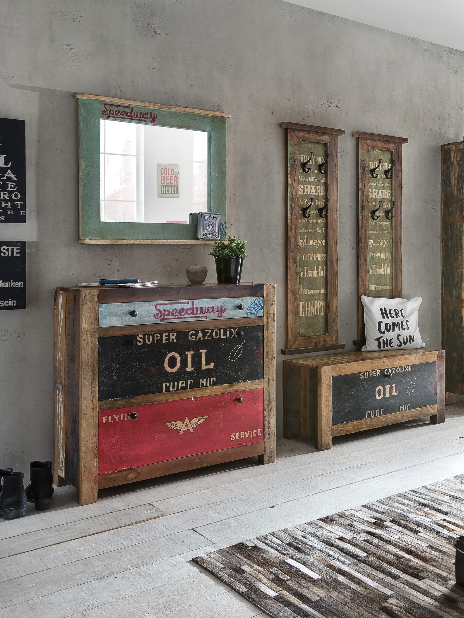 Paneel: recyceltes Altholz massiv (Indien) multicolor lackiert