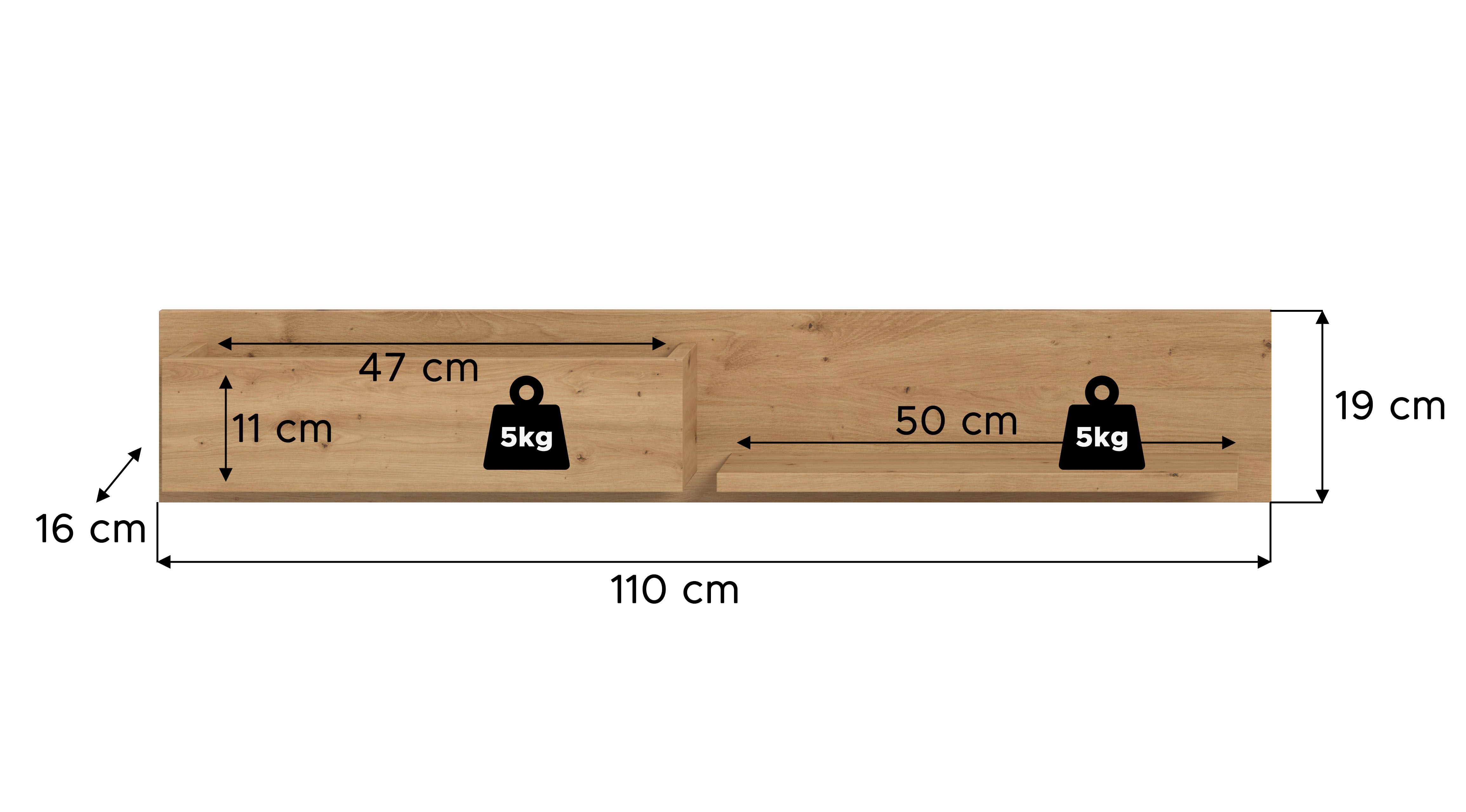 - Maße ca. (B/H/T): 110 x 19 x 16 cm