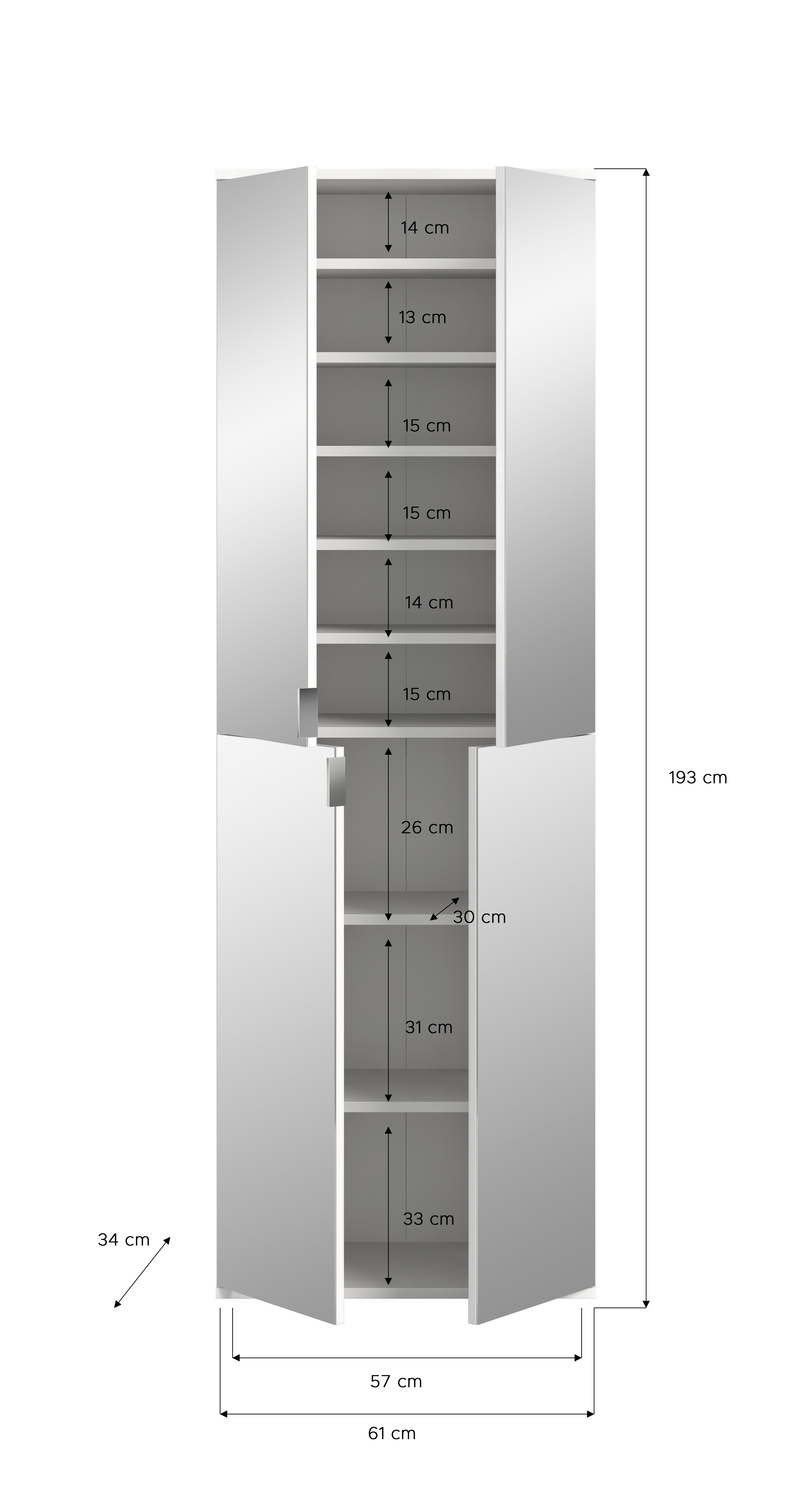 - Einsatzbereich: Vielseitig einsetzbar in verschiedenen Räumen wie Flur, Diele, Hauswirtschaftsraum, Büro oder Schlafzimmer, bietet der Spiegelschrank eine praktische und platzsparende Lösung zur Aufbewahrung und ermöglicht eine geordnete und übersichtliche Organisation verschiedener Gegenstände.