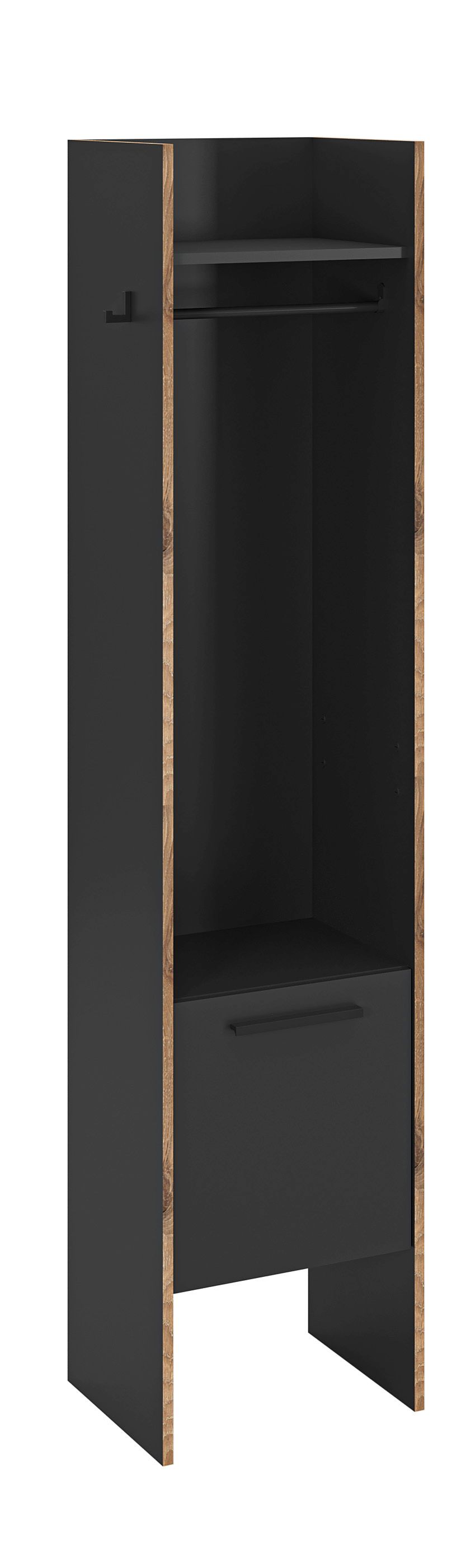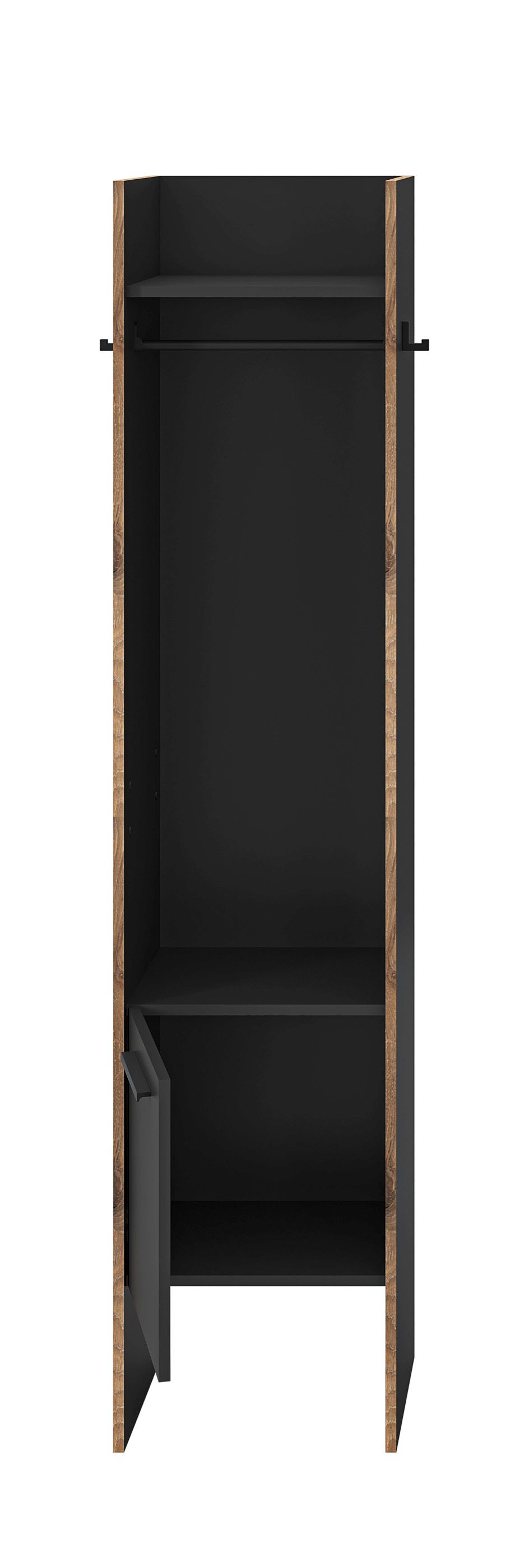 Dieser Garderobenschrank bietet Ihnen nicht nur praktischen Stauraum, sondern auch eine stilvolle Lösung für Ihren Eingangsbereich, die Ihren Alltag erleichtert und für Ordnung sorgt. Er schafft eine einladende Atmosphäre, in der Sie sich wohlfühlen und Ihre Gäste beeindrucken können. Mit seinem modernen Design in elegantem Basalt Melamin fügt sich der Schrank harmonisch in jedes Zuhause ein und vermittelt ein Gefühl von Geborgenheit und Stil. Die integrierte Sitzfläche lädt zum bequemen An- und Ausziehen der Schuhe ein und macht das morgendliche Vorbereiten zum entspannten Moment. Besonders hervorzuheben sind die durchdachten Details: Eine robuste Kleiderstange bietet ausreichend Platz für Jacken und Mäntel, während die belastbare Sitzfläche bis zu 90 kg trägt. Die kompakte Größe von 42 x 189 x 37 cm macht den Schrank ideal für auch kleinere Flure, ohne dabei auf Funktionalität zu verzichten. Ob zum schnellen Verstauen Ihrer Oberbekleidung nach einem langen Tag oder als gemütlicher Sitzplatz beim Schuhe anziehen – dieser Garderobenschrank ist vielseitig einsetzbar und passt sich Ihren Bedürfnissen perfekt an. Er eignet sich ebenso hervorragend für den privaten Gebrauch wie für den Einsatz in Büros oder Wartebereichen.