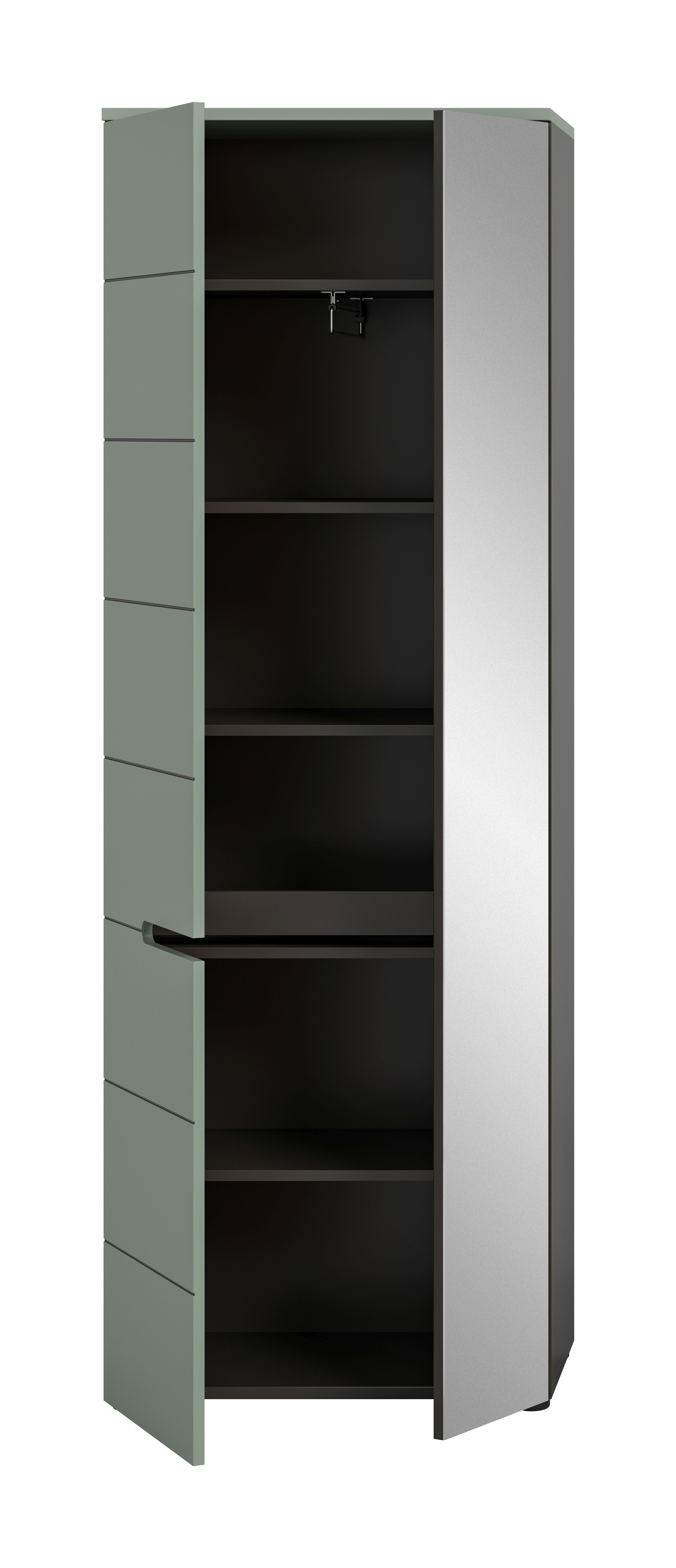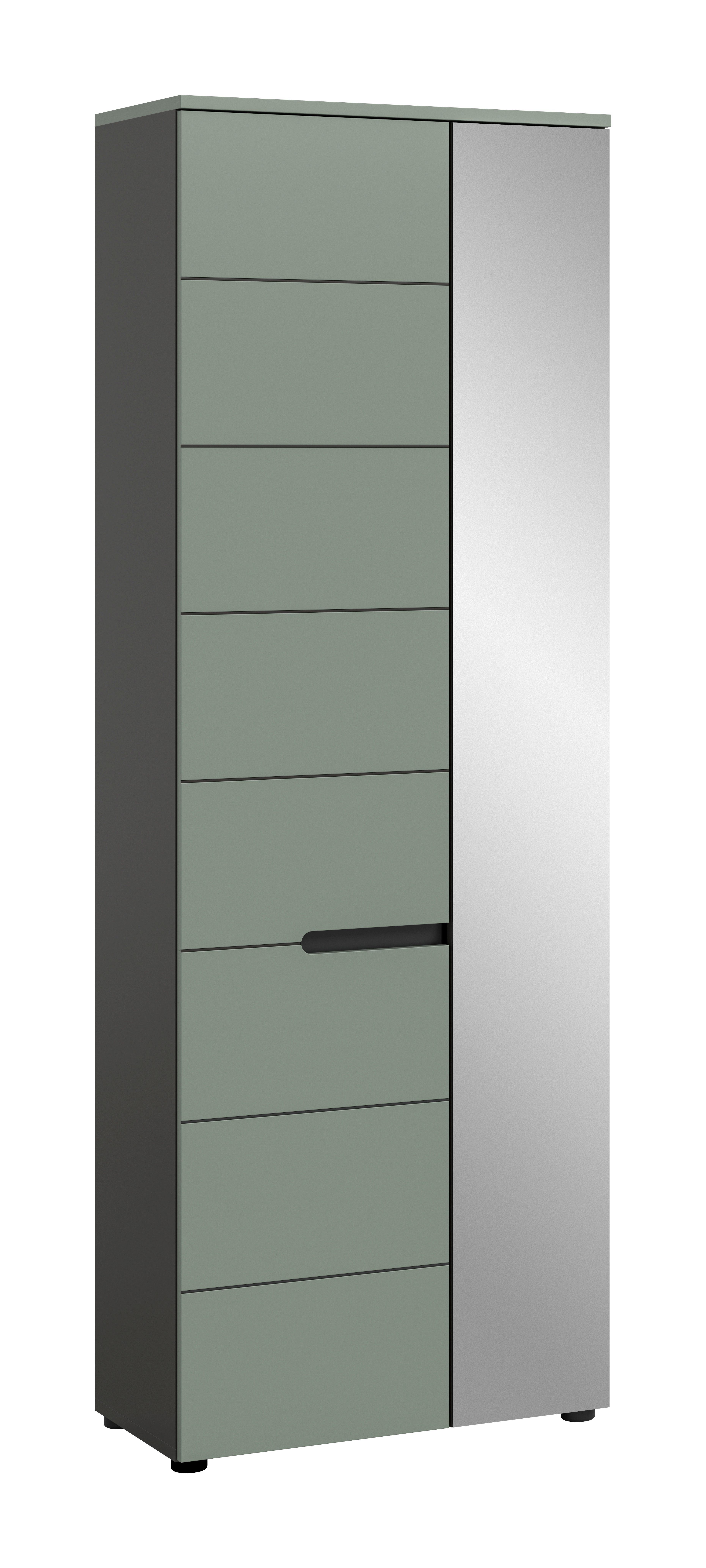 - Design/Stil: Garderobenschrank mit modernem und ansprechendem Design in Basalt grau NB und Smoke Green, das eine zeitgemäße Ästhetik in Fluren und Dielen schafft.