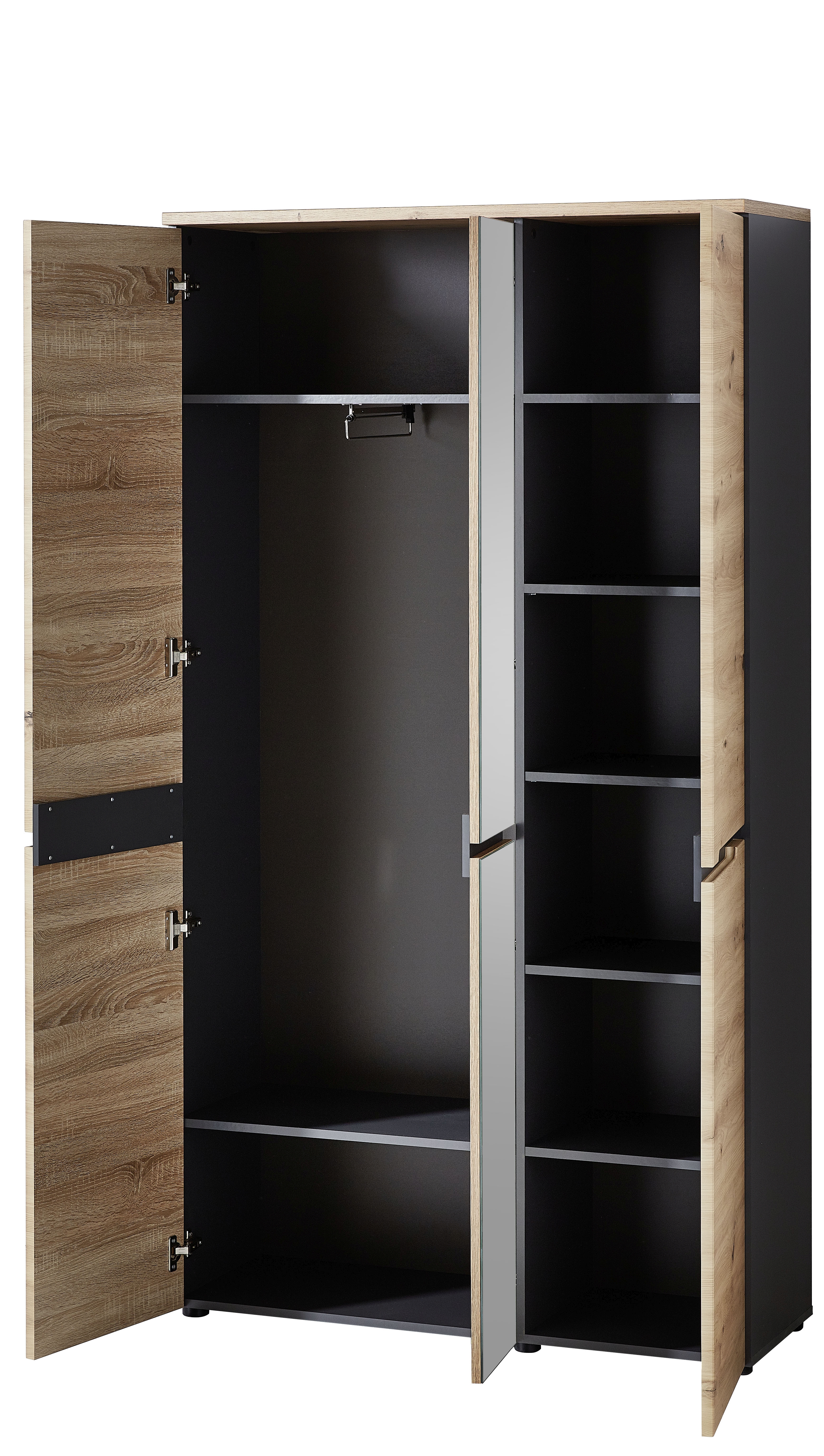Front: Artisan Eiche MDF Holznachbildung kombiniert mit Absetzungen in Graphit / Spiegel