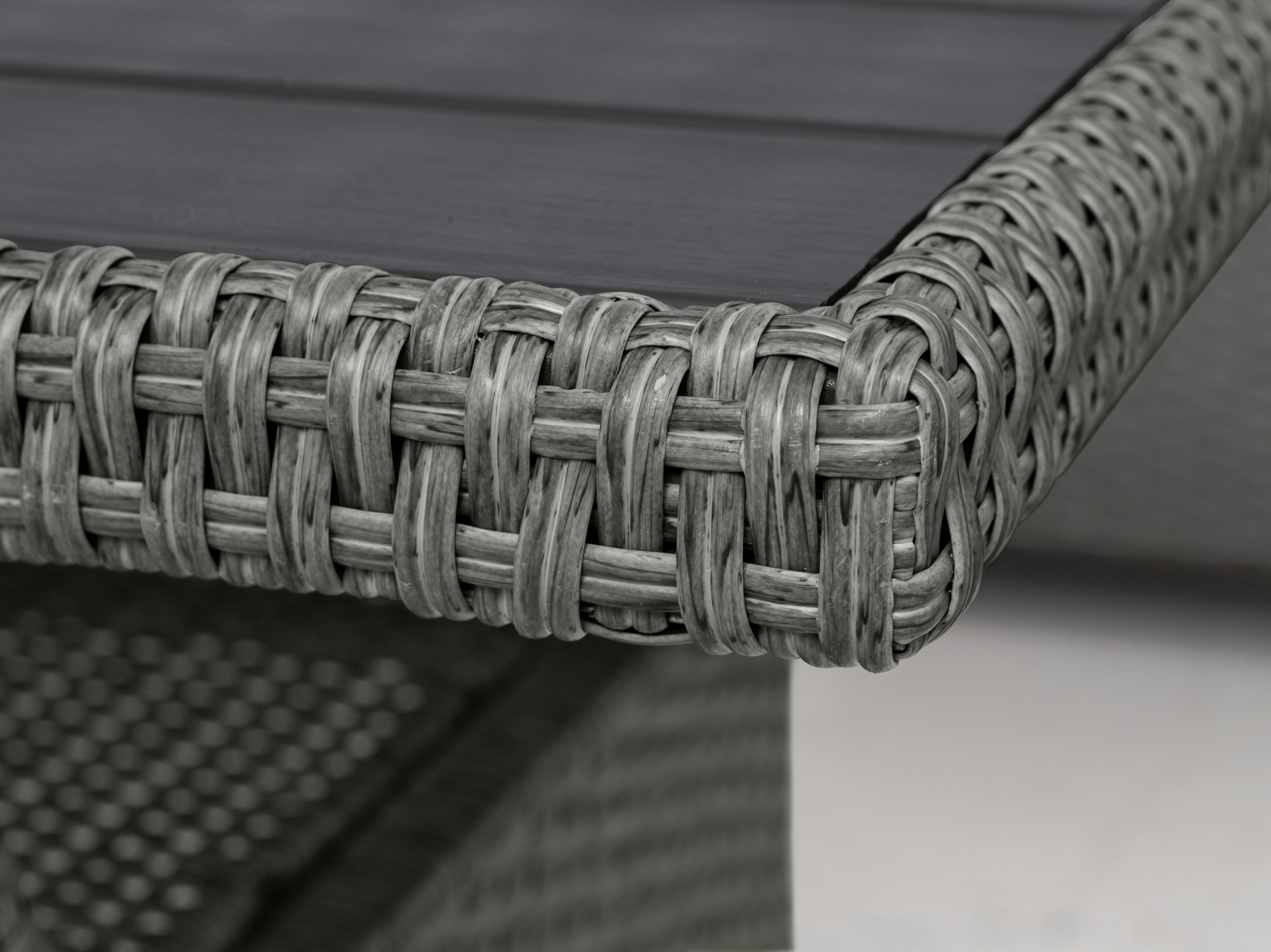 Gestelle: Stahl pulverbeschichtet / Synthetisches Rattangeflecht Polywicker (100% PE) in grau