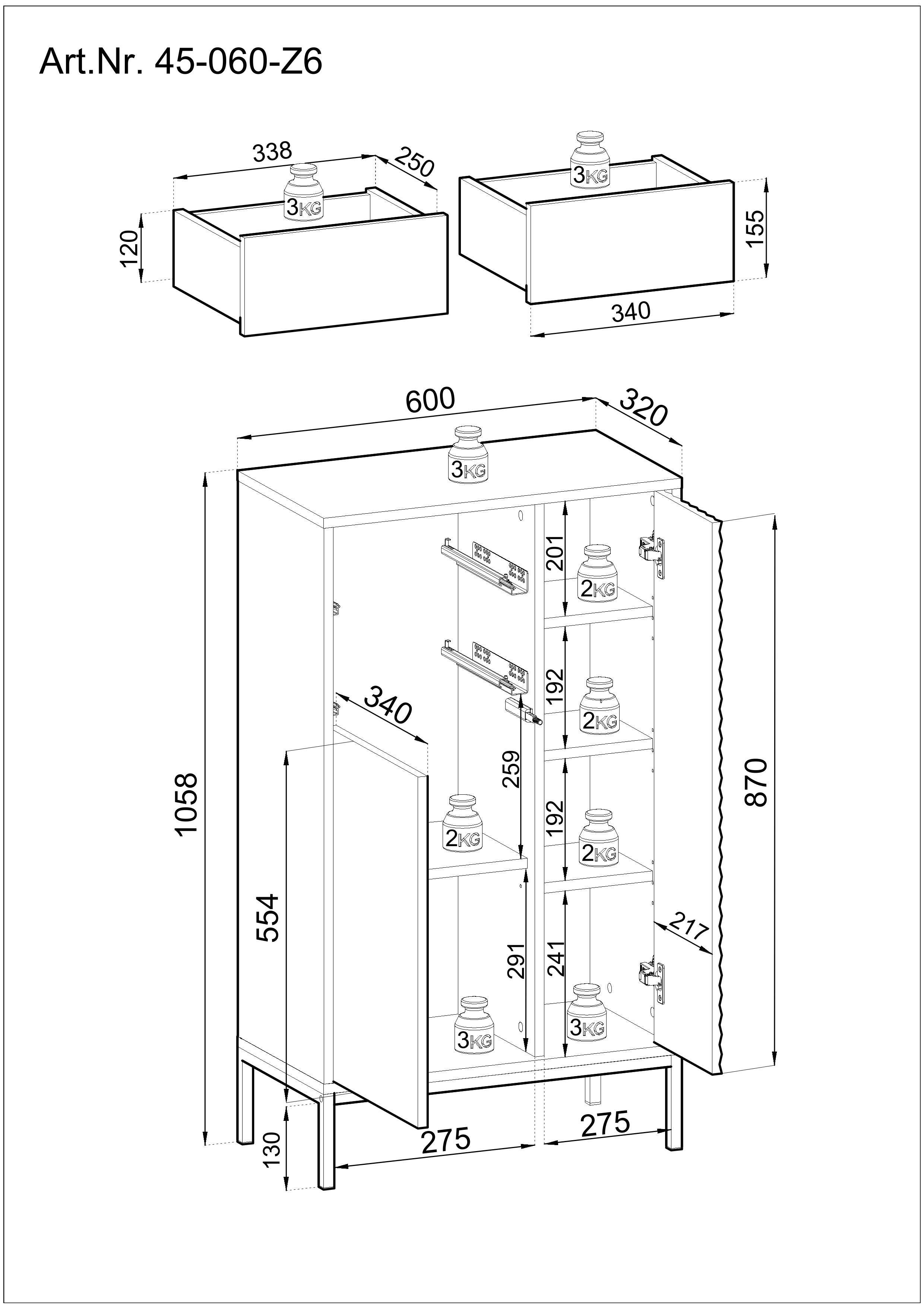 | Maße: | B/H/T ca. 60/106/32 cm | ||