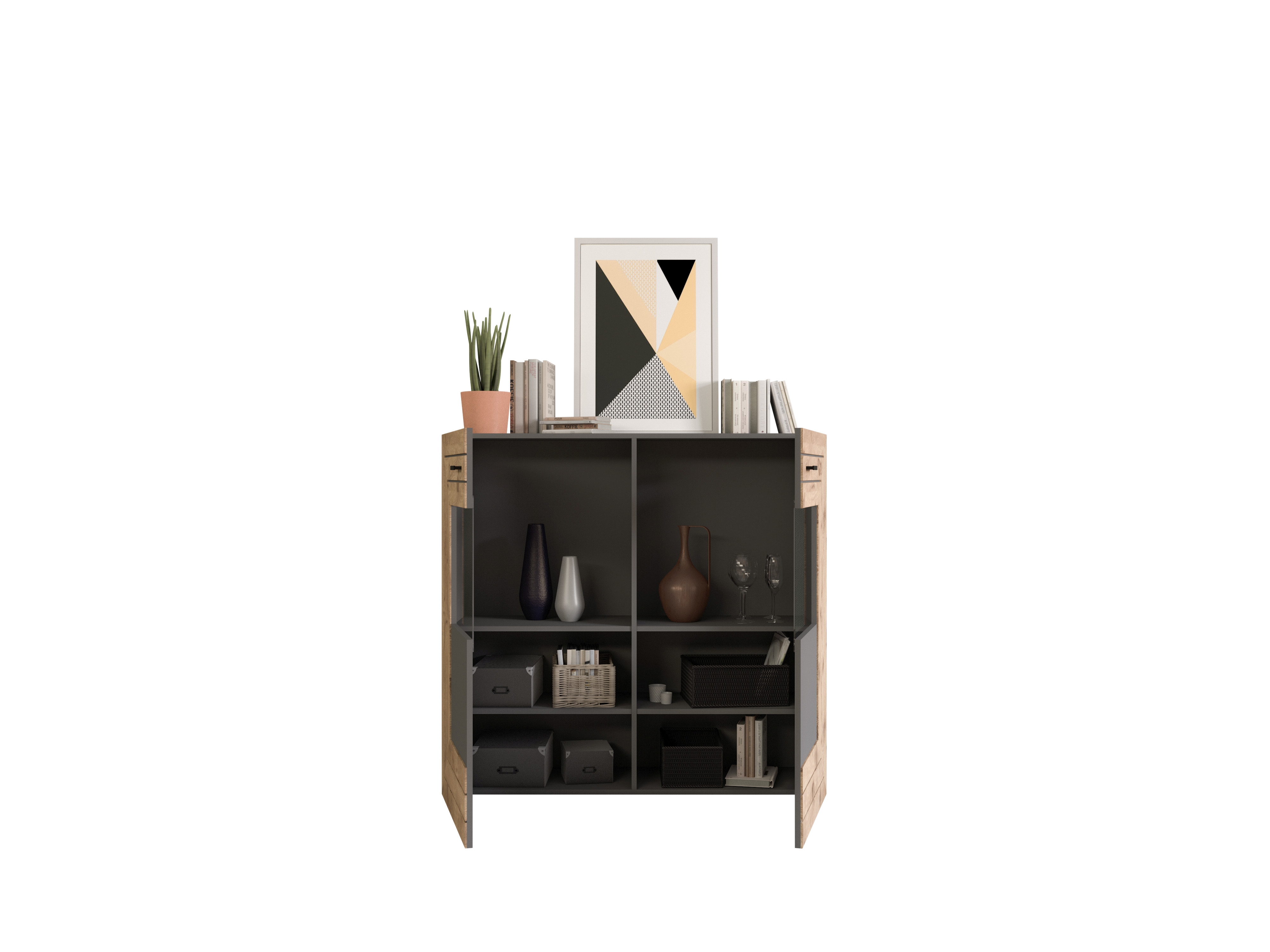 Unser Highboard in edler Grau-Nachbildung ist die ideale Lösung für stilvolle Aufbewahrung. Mit Maßen von 120x117x37 cm bietet es nicht nur ausreichend Platz für Ihre Gegenstände, sondern fügt sich auch nahtlos in jedes Wohnambiente ein. Entdecken Sie jetzt dieses praktische Möbelstück für Ihr Zuhause!