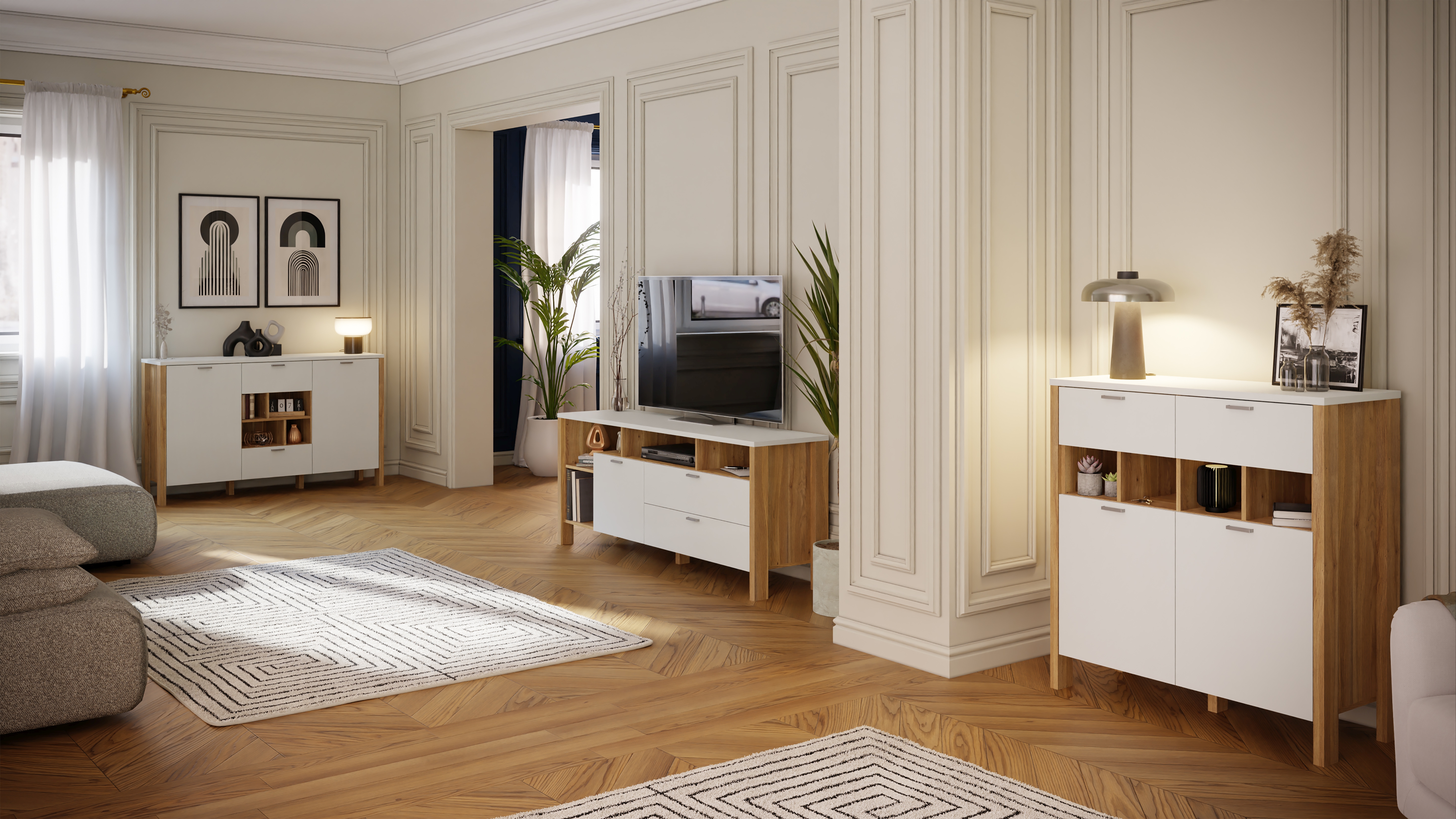 | Ausstattung Kommoden Phono Büro Regal: | Offene Fächer, Schublade(n), Türe(n) | ||
