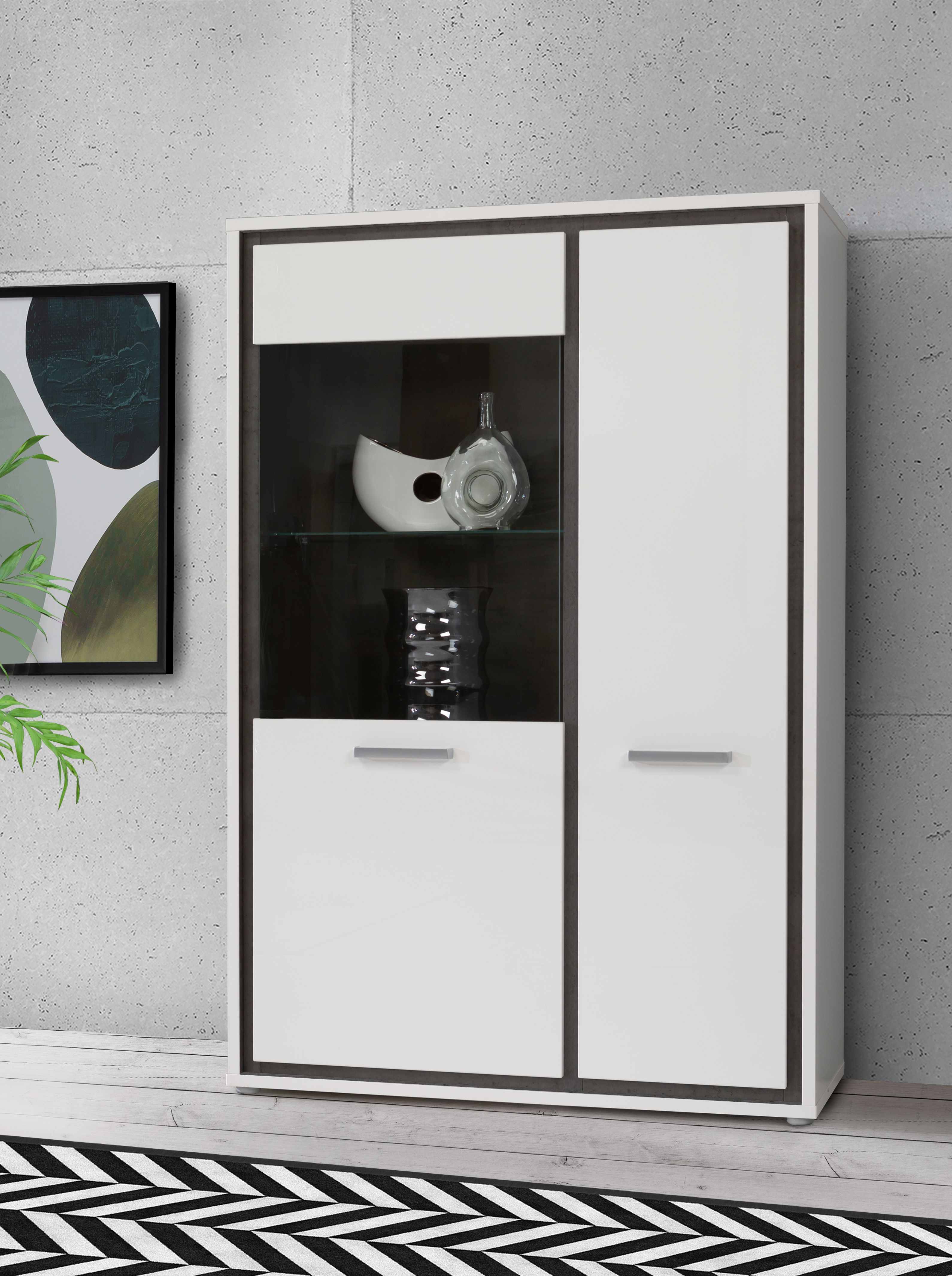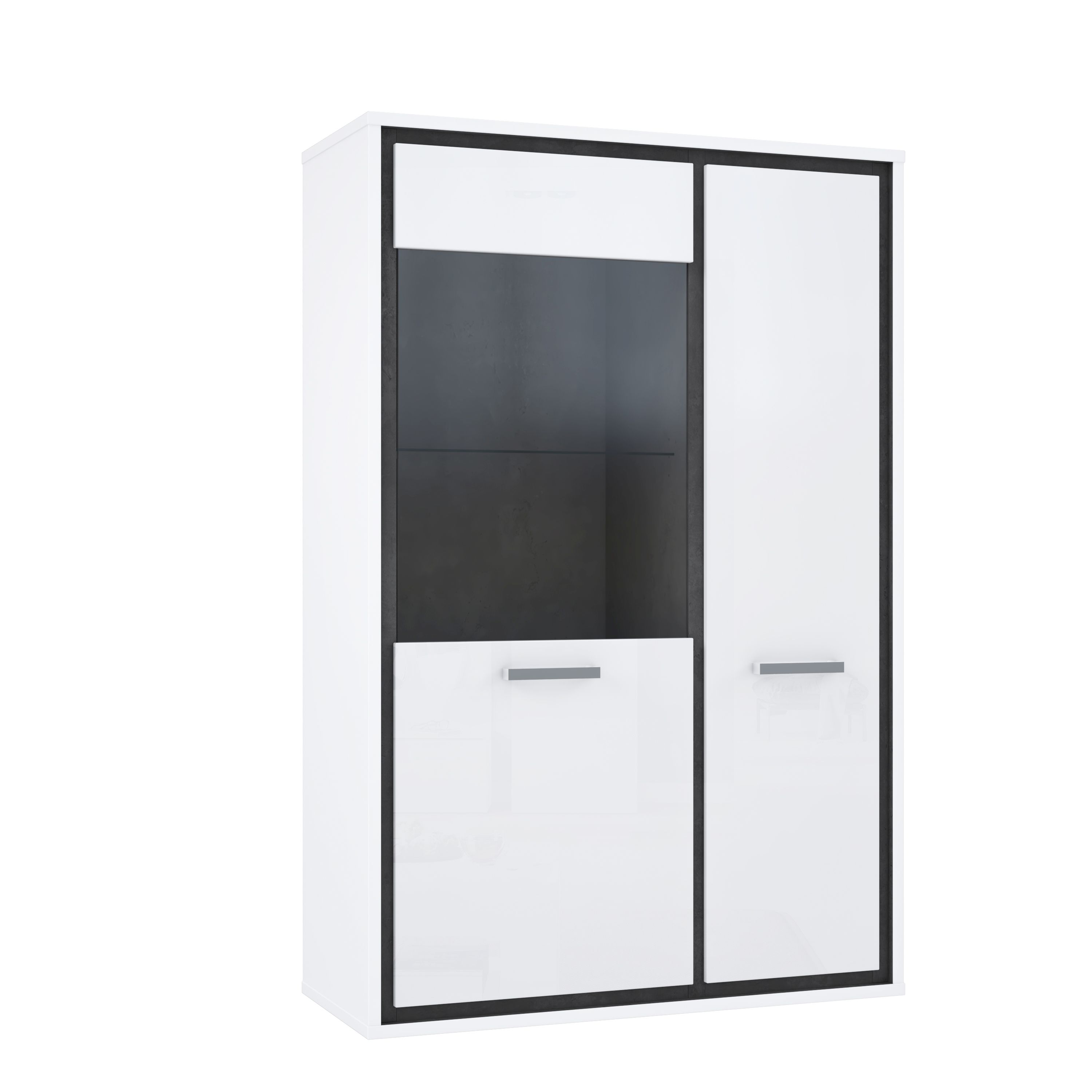 Front und Korpus: Weiß kombiniert mit Absetzungen in Concrete Optik Dark Gray