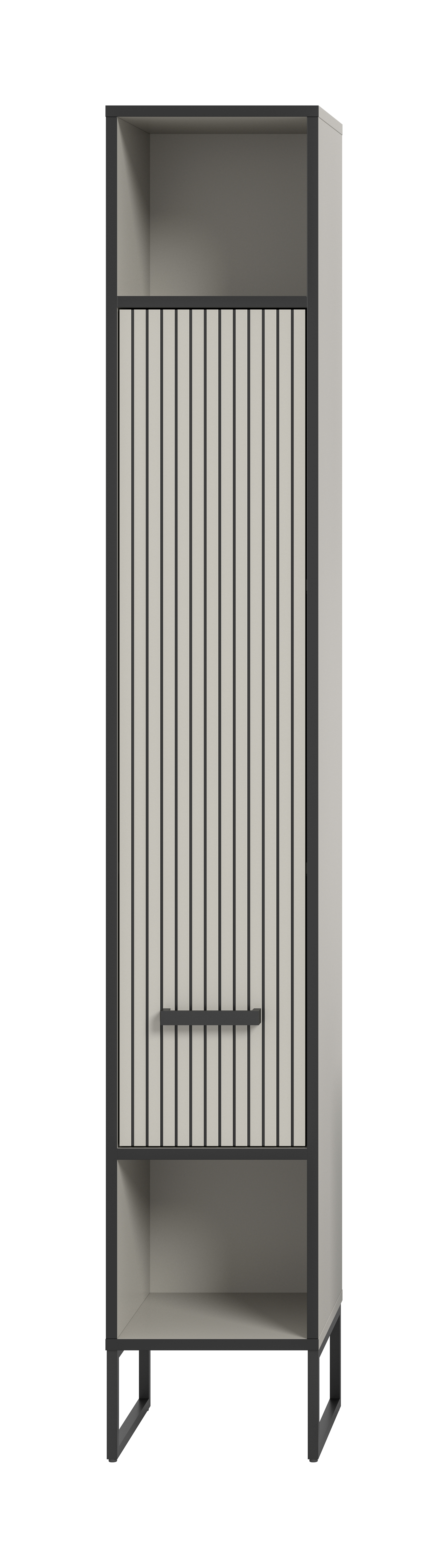 Mit unserem Hochschrank trotzen Sie dem Platzmangel! Ausgestattet mit einer Tür, zwei höhenverstellbaren Einlegeböden und fünf Fächern ist er ideal für alle, die viele Utensilien unterbringen möchten. Die offenen Fächer bieten Platz für Dekoration und persönliche Akzente.