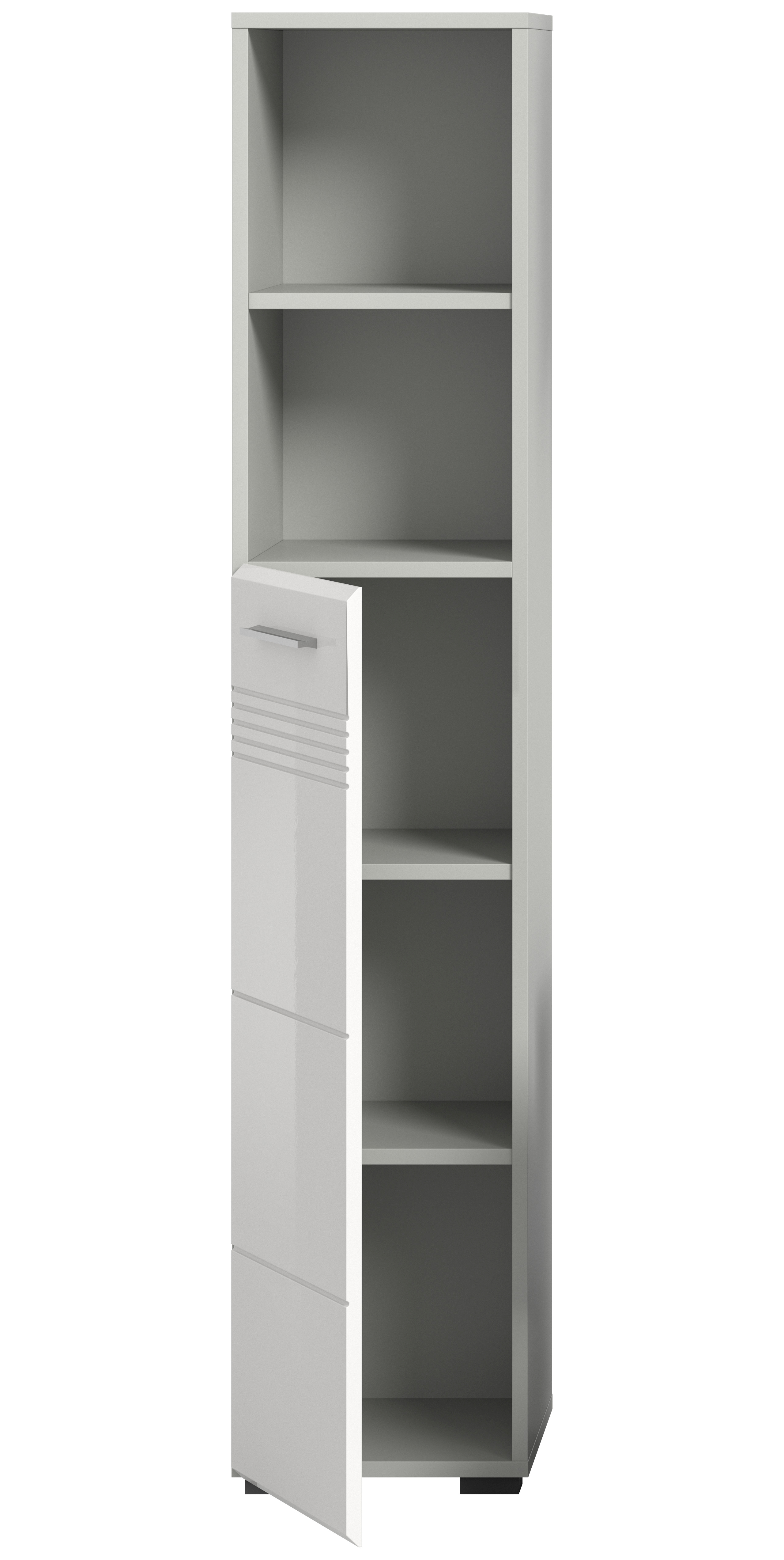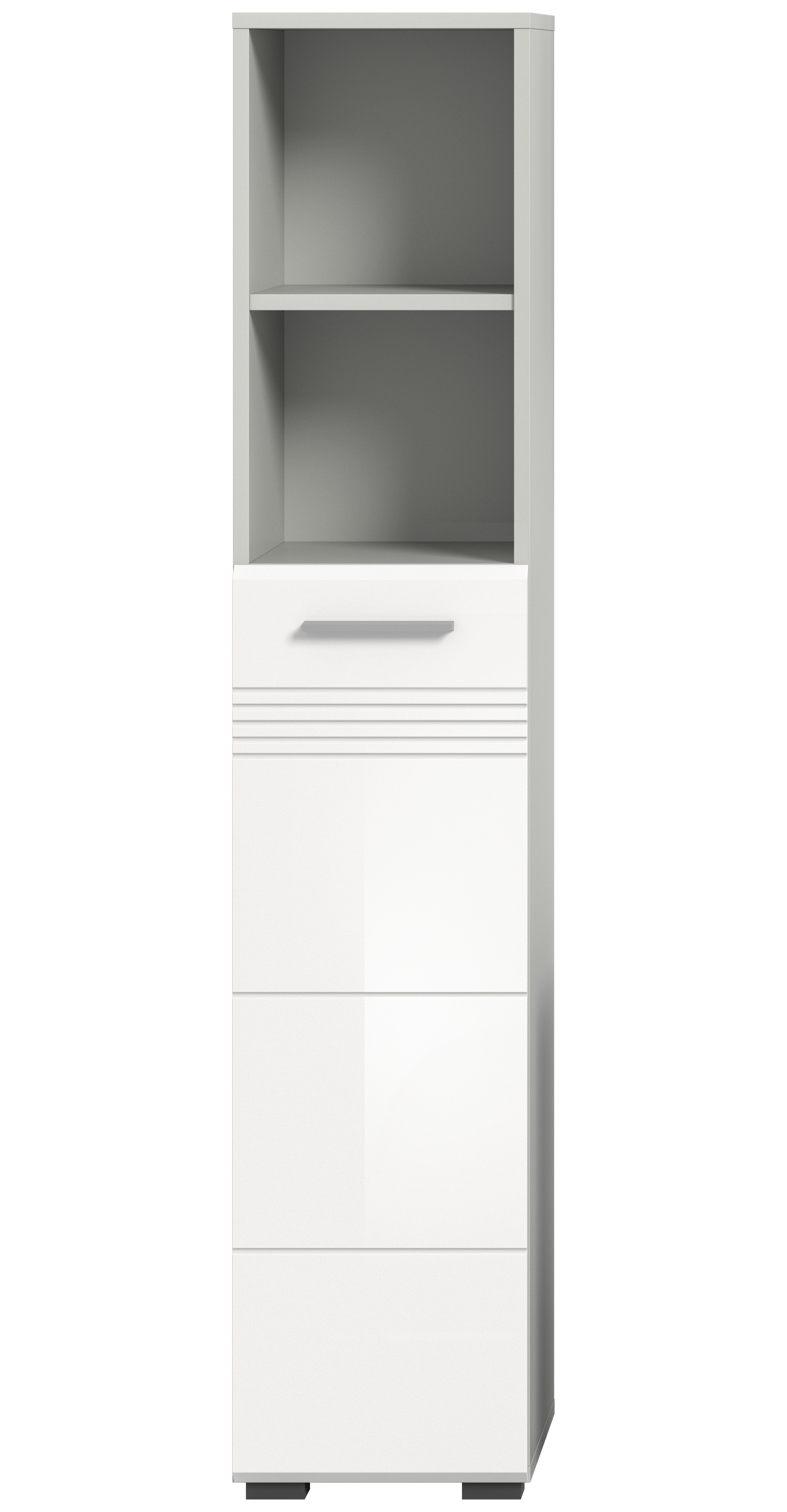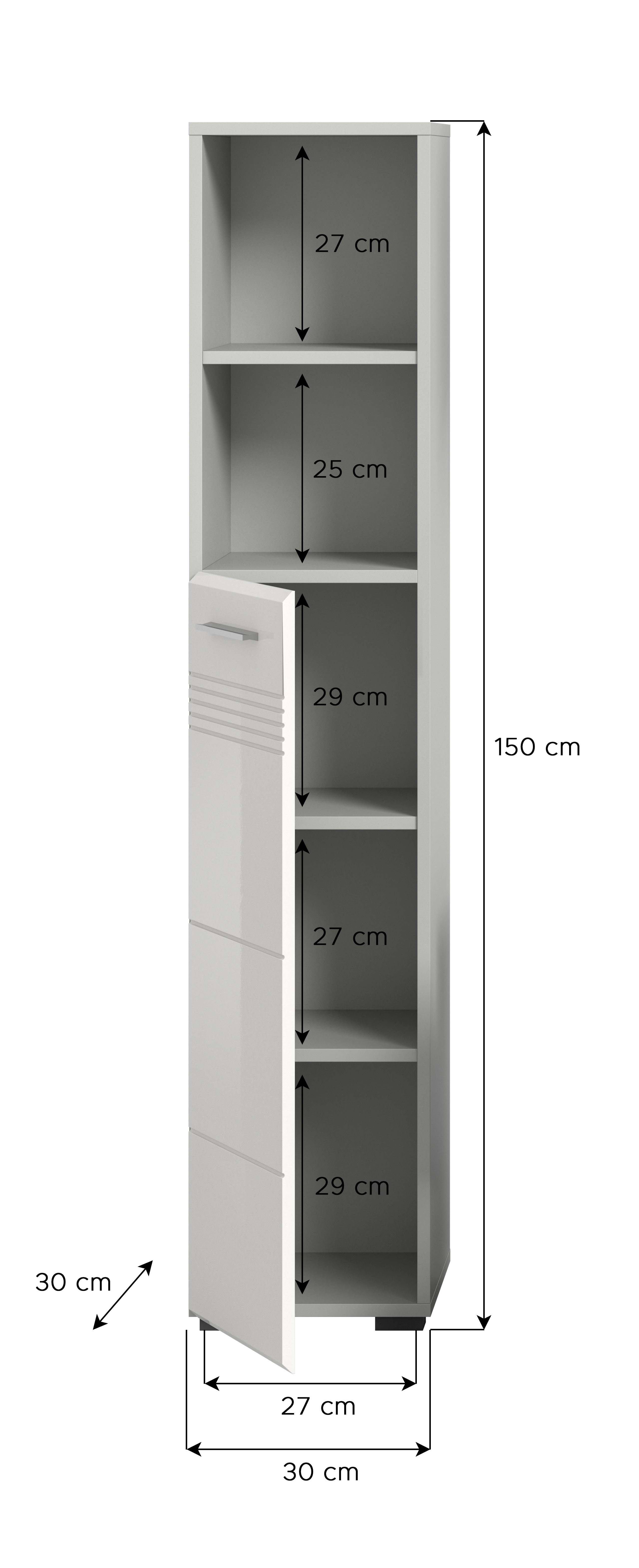 Tauchen Sie ein in die Welt der Eleganz mit unserem Hochschrank in ansprechendem Hellgrau Nachbildung und weißem Hochglanz, tiefgezogen für ein strahlendes Finish. Mit großzügigen Maßen von (B/H/T: 30x150x30 cm) bietet er nicht nur praktischen Stauraum, sondern verleiht Ihrem Wohnraum auch einen Hauch von Raffinesse. Dieser Schrank ist die perfekte Ergänzung für moderne Wohnkonzepte.