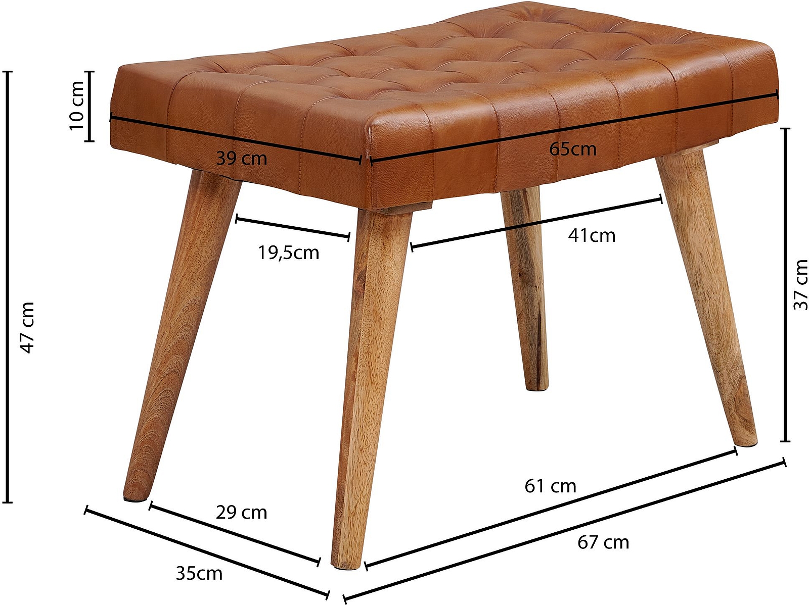 - MATERIAL ✔ Bezug der Sitzfläche: Ziegenleder // Standbeine und Fußablagen: Massives Mango Naturholz mit schützender Klarlackbeschichtung.