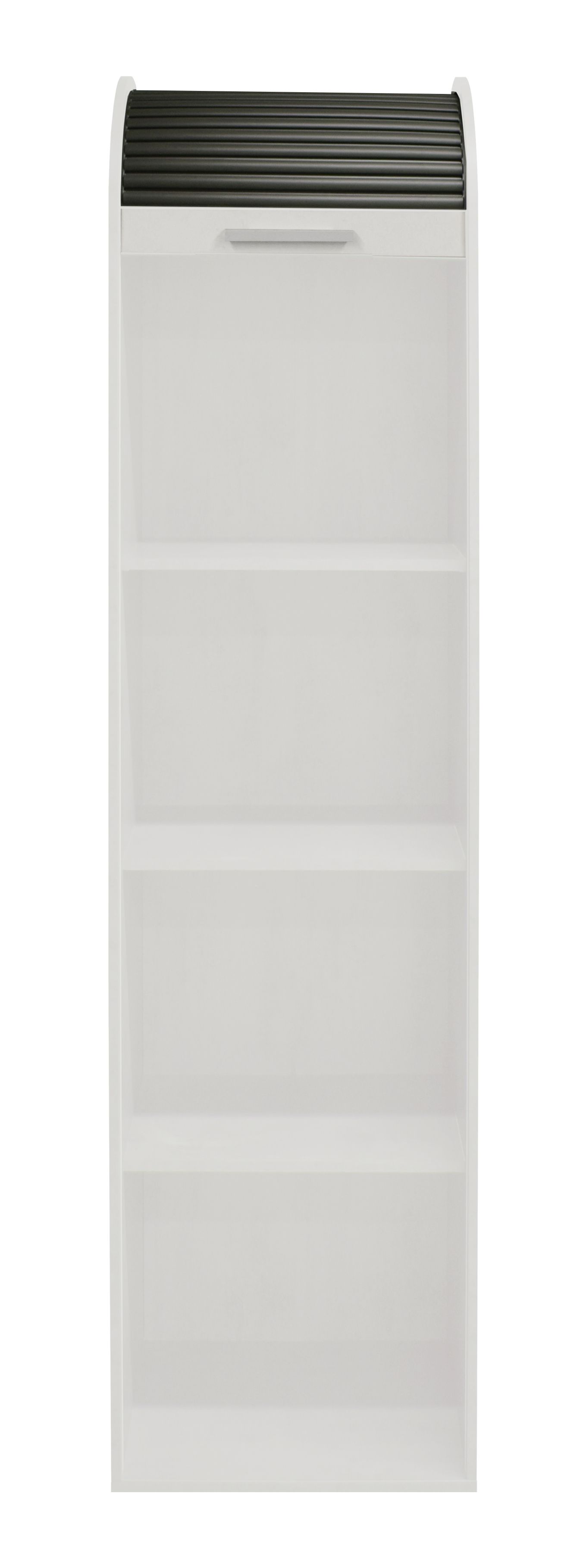 Weiß matt Lack kombiniert mit einem graphitfarbenem Rollo