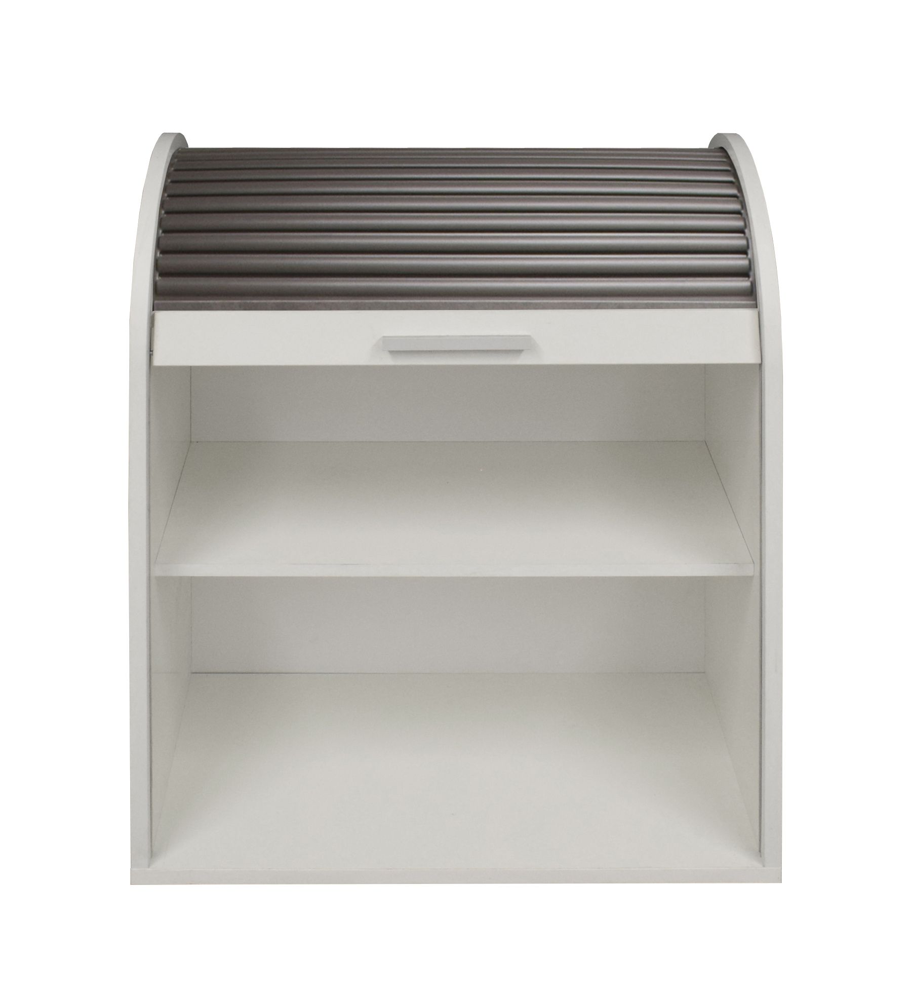 Weiß matt Lack kombiniert mit einem graphitfarbenem Rollo