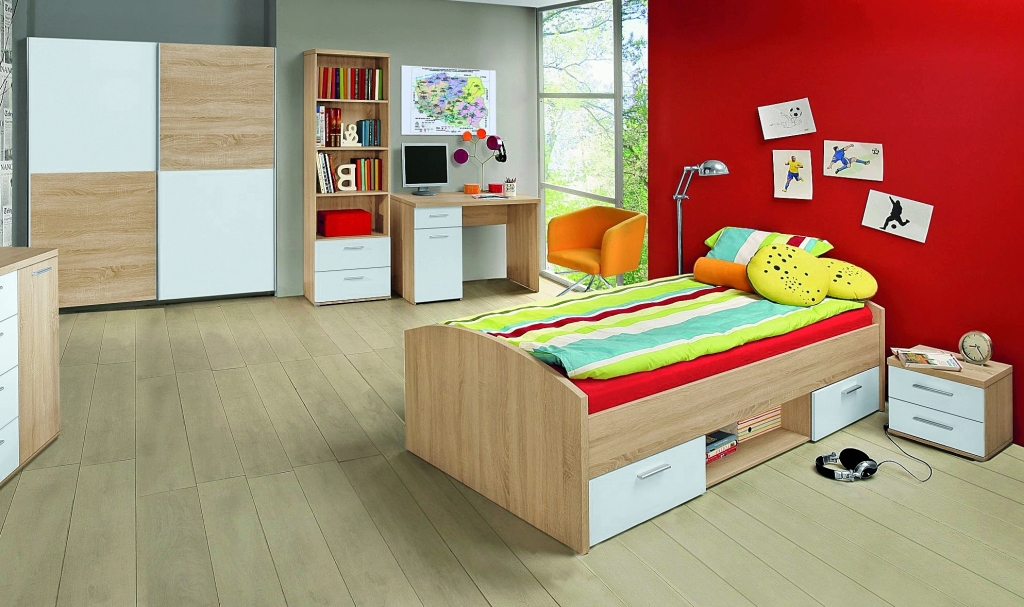 - ein Jugendbett mit zwei Schubkästen und ein offenes Fach