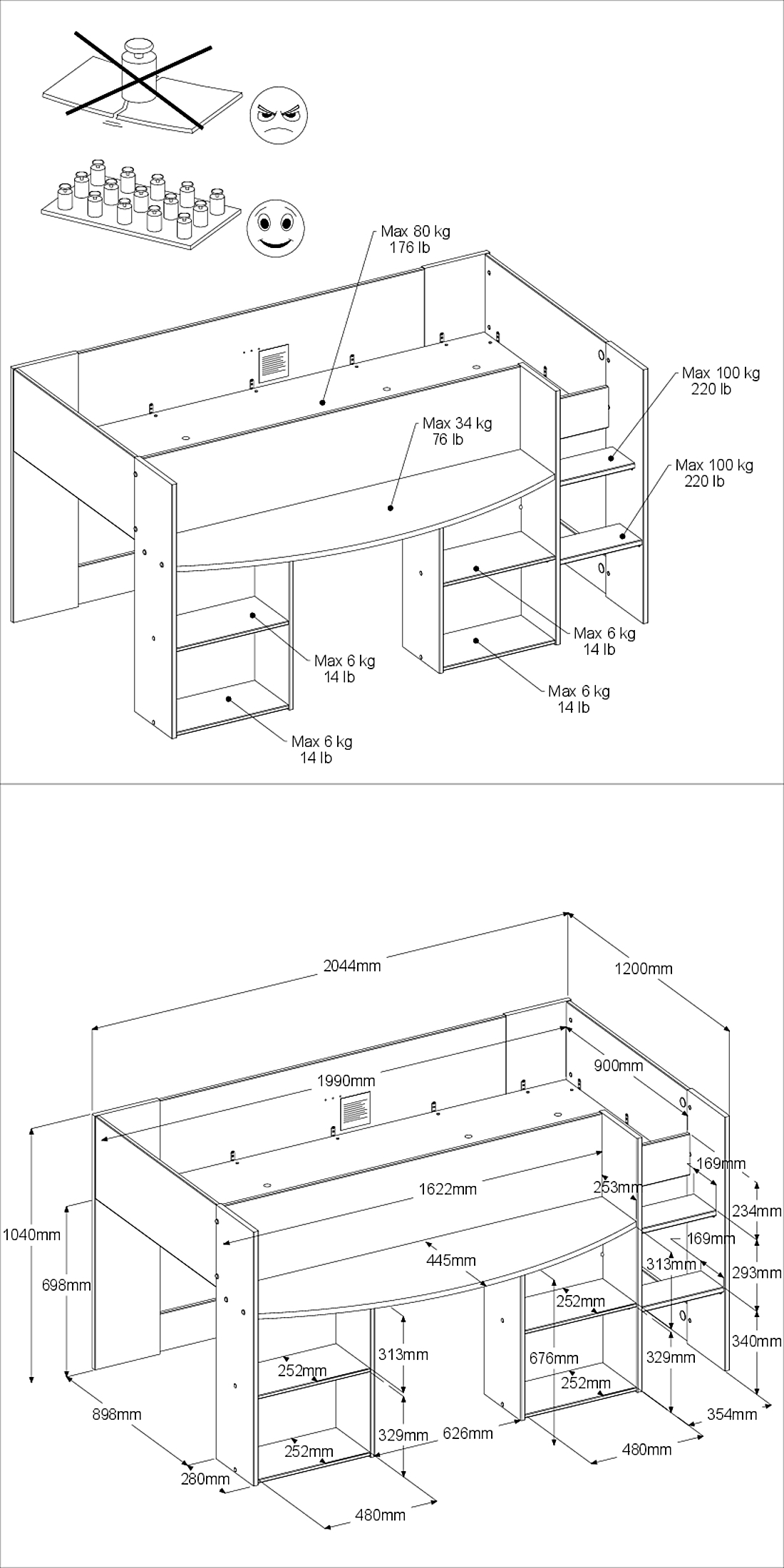 integrierte Schreibtischplatte - längsseitig der Liegefläche
