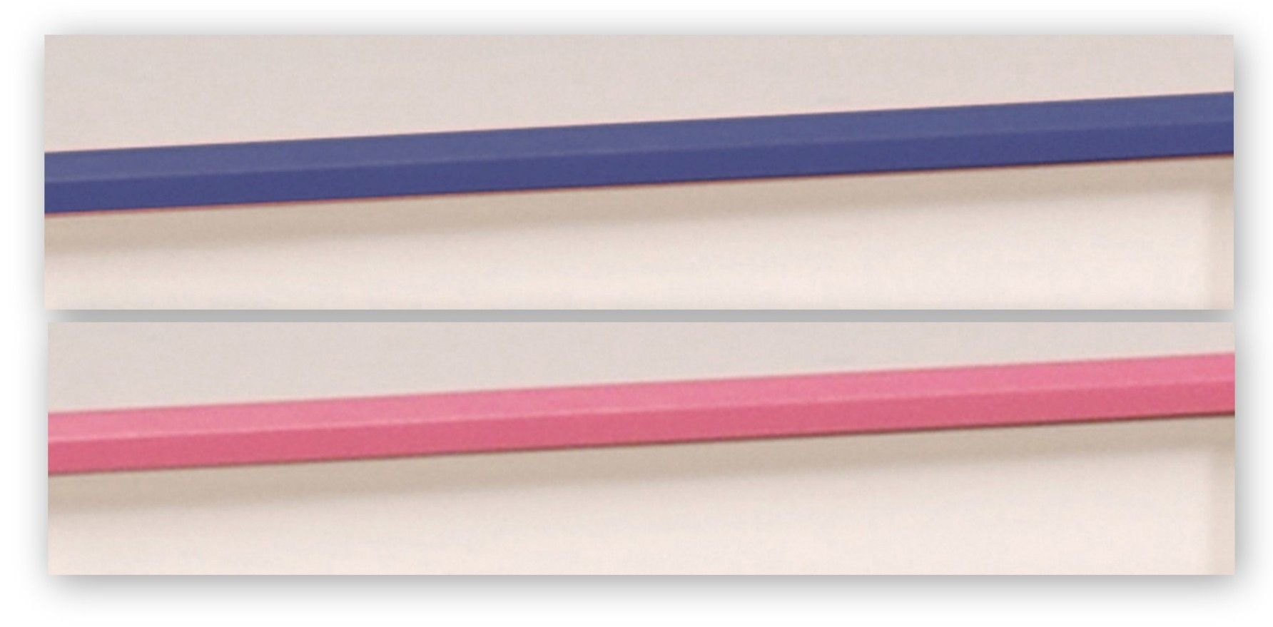 31 Kiefer Weiß Holznachbildung kombiniert mit farblich abgesetzten Kanten auf Blau oder Pink drehbar