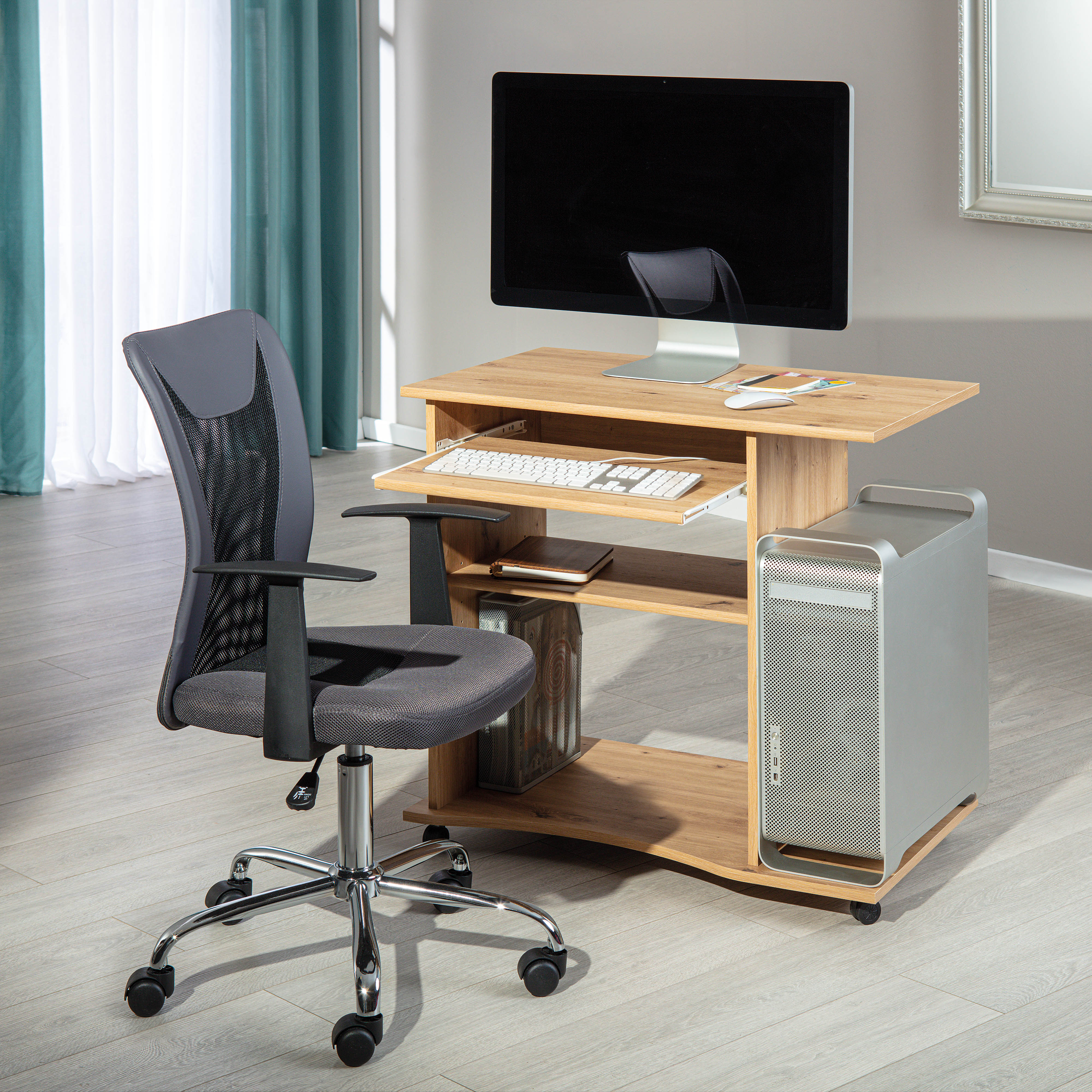 Zusätzlich sorgt der verstellbare Drehstuhl mit Armlehnen für eine Entlastung der Schultermuskulatur.
