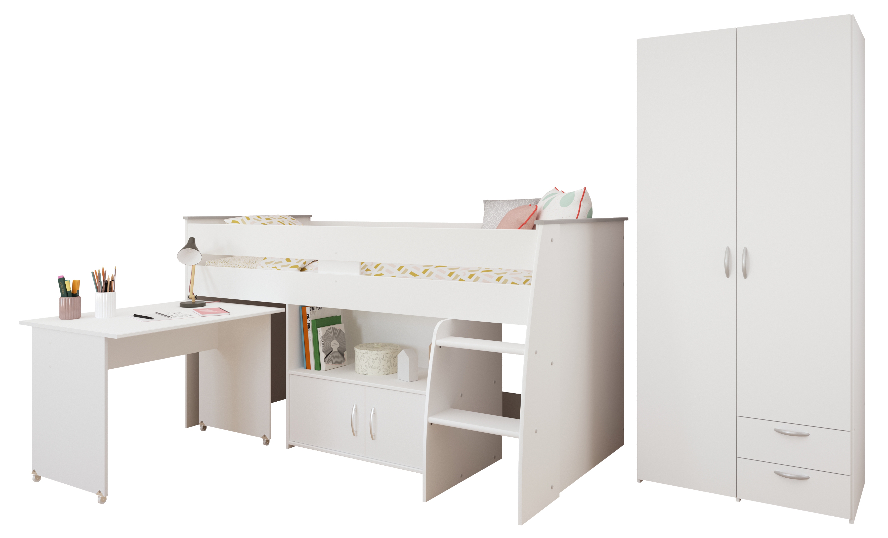 | Hochbett mit ausgezogenem Schreibtisch | 204 | 110 | 177 |