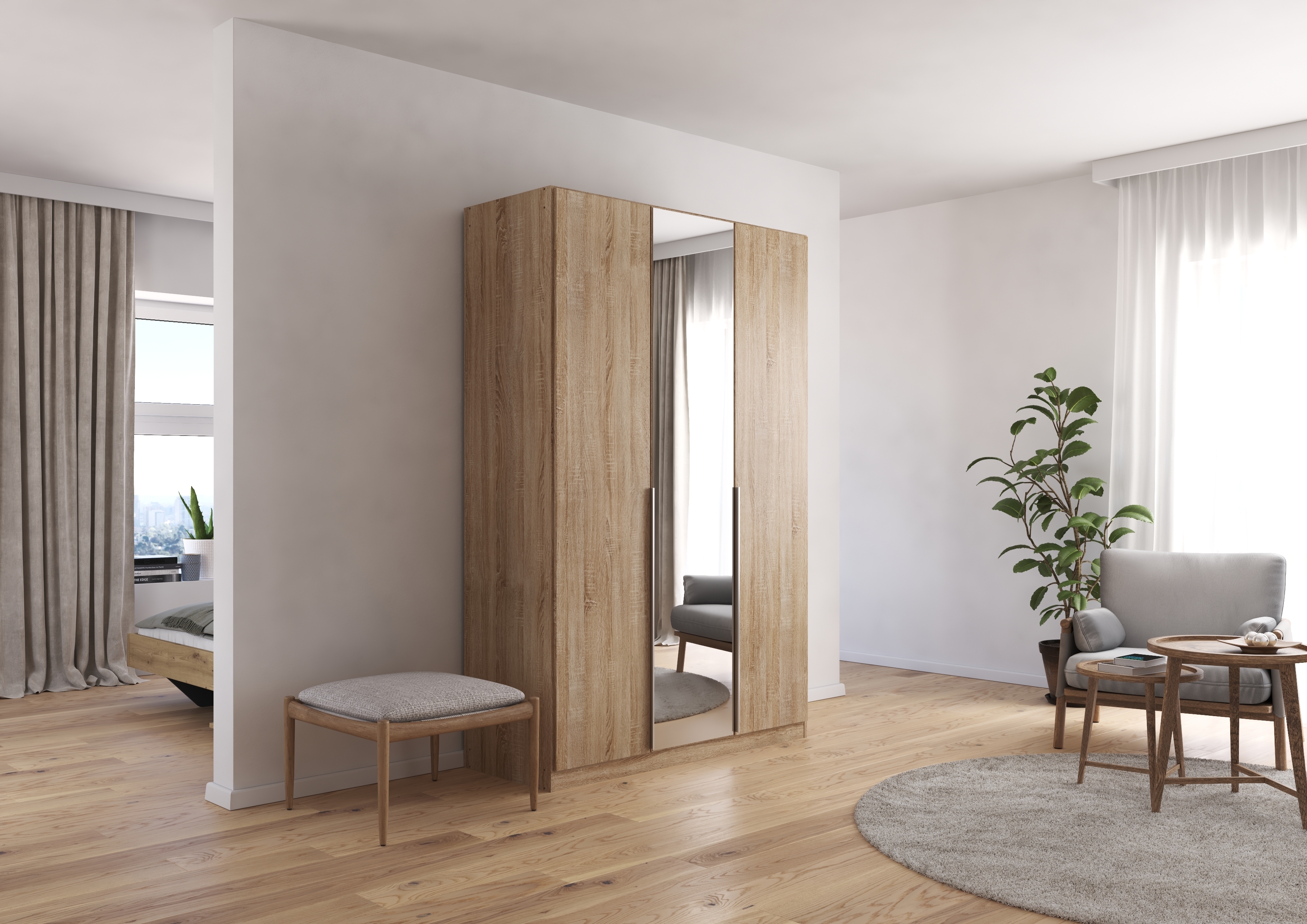 3 Türen, davon mittig 1 Tür mit Spiegel