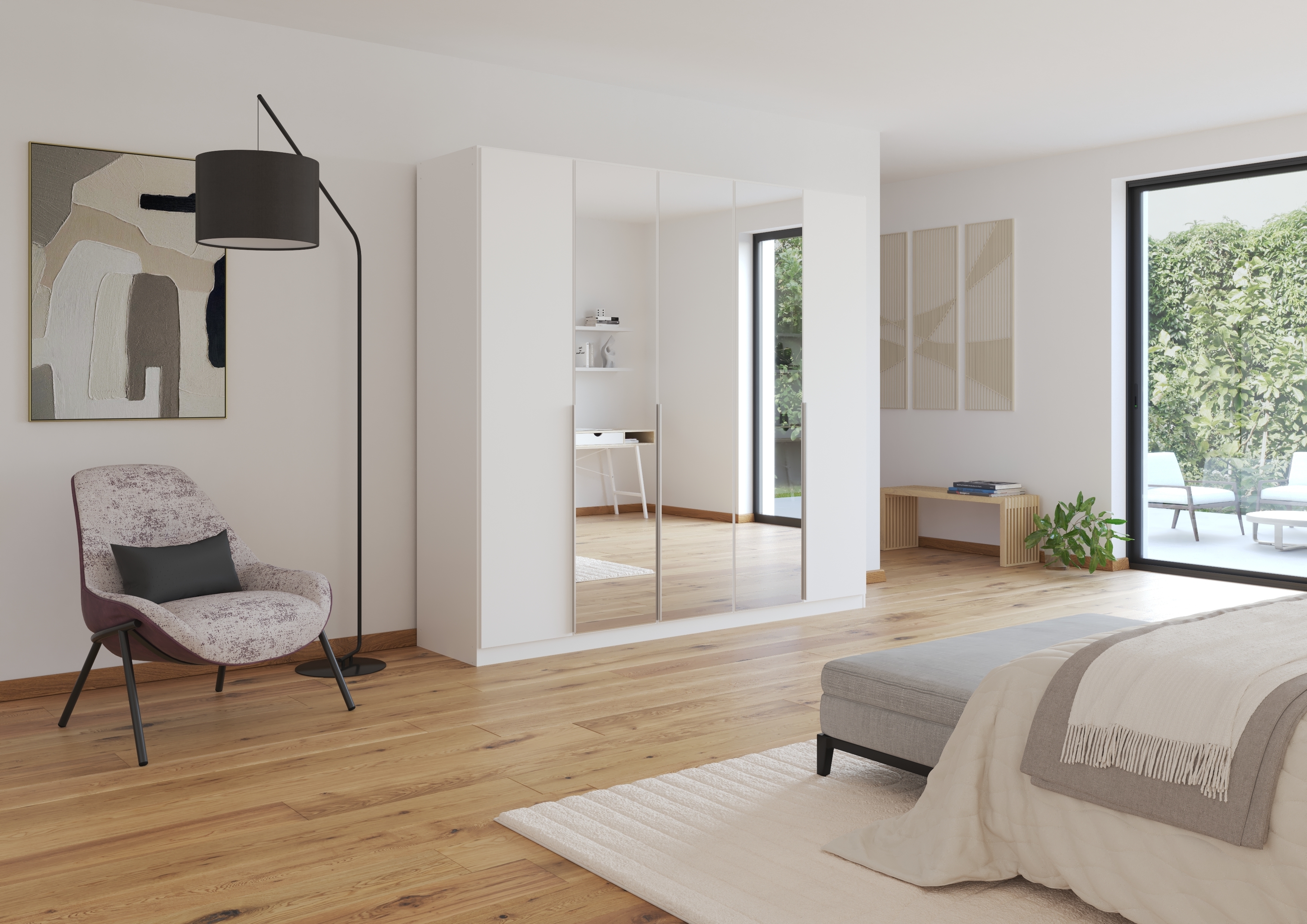 5 Türen, davon mittig 3 Türen mit Spiegel