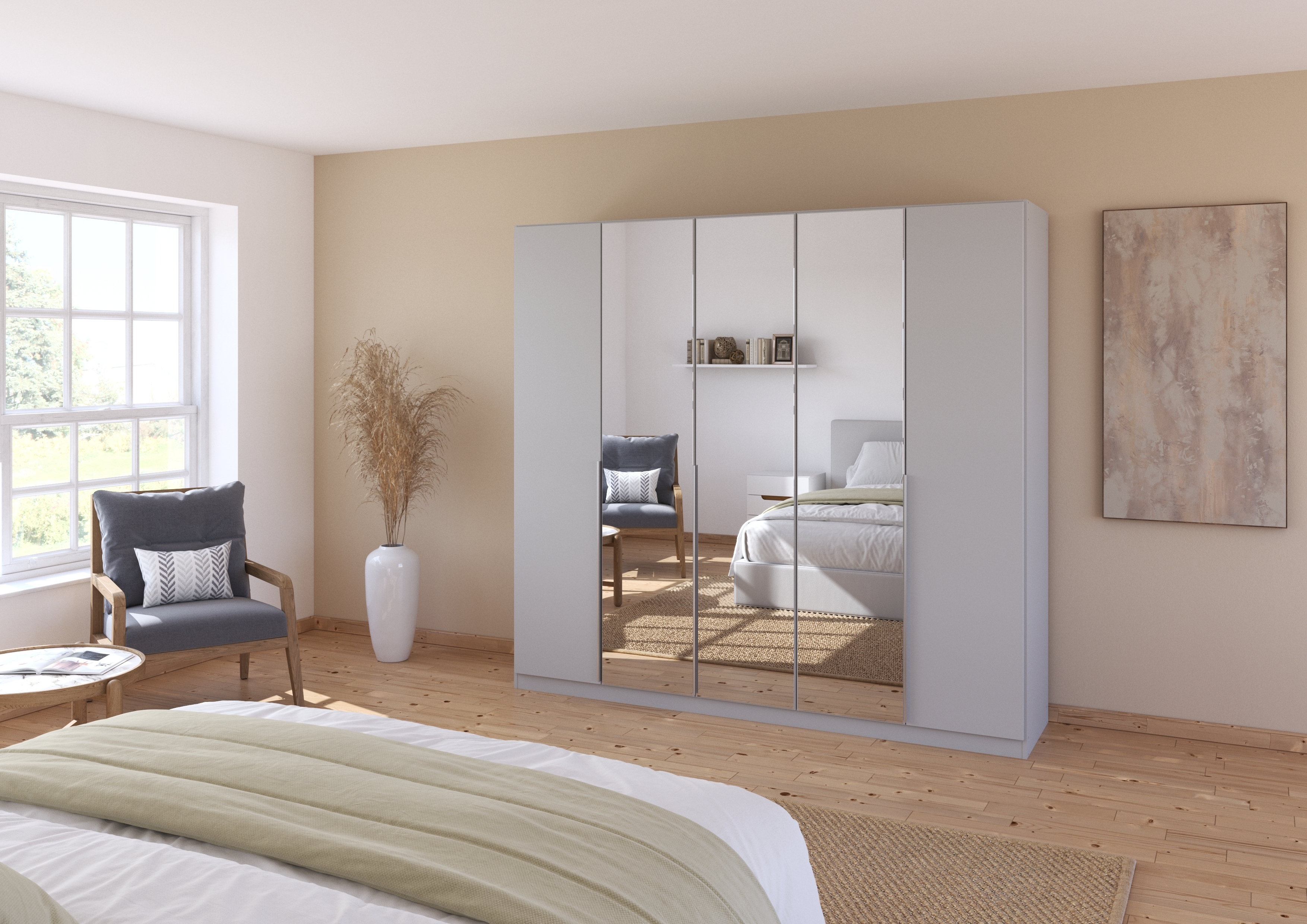 5 Türen, davon mittig 3 Türen mit Spiegel